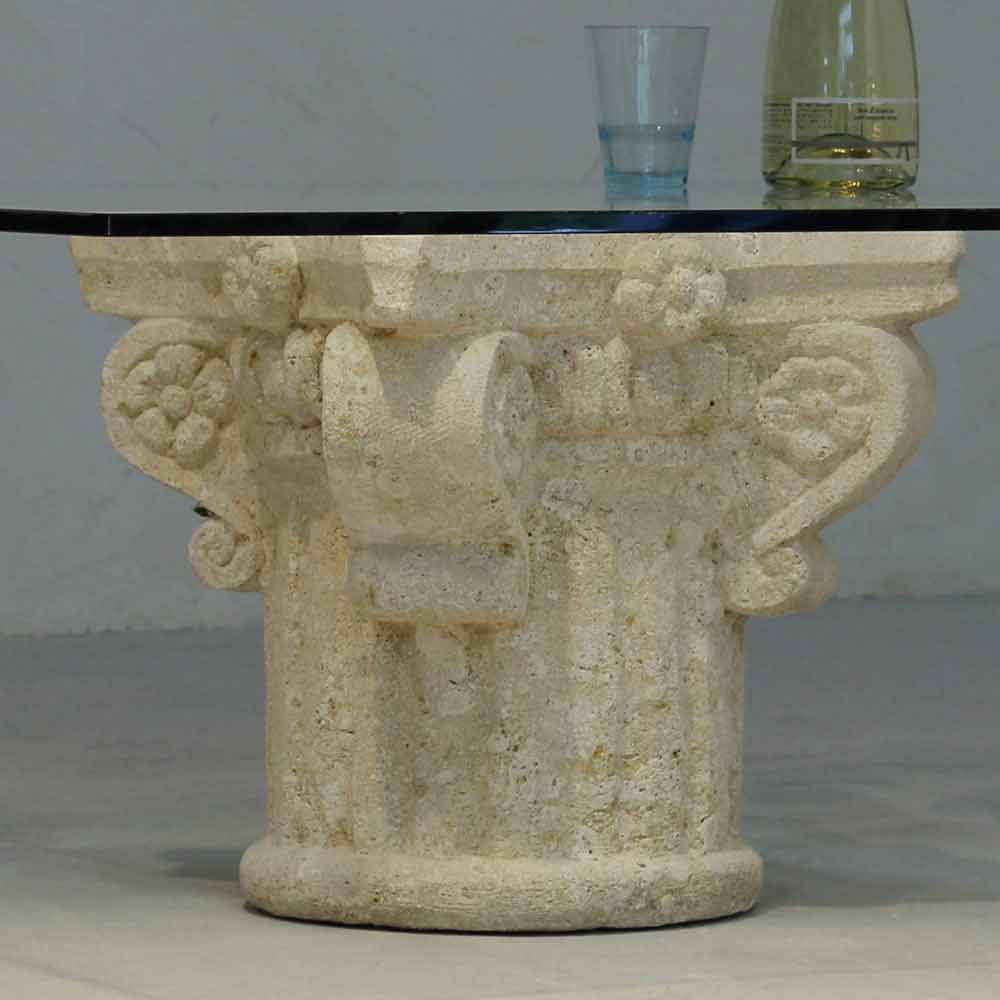 Mesita de piedra de Vicenza y cristal esculpida a mano Balos