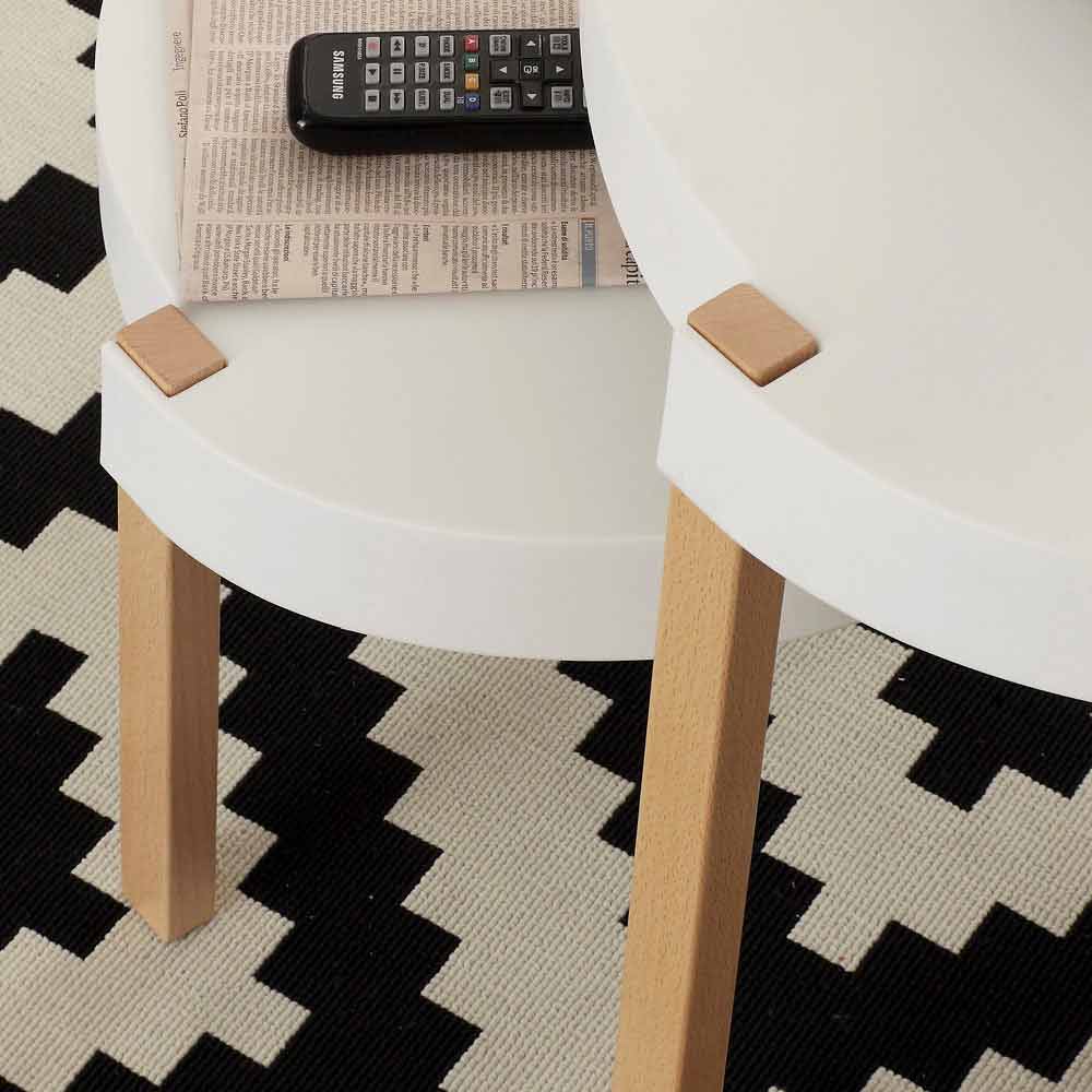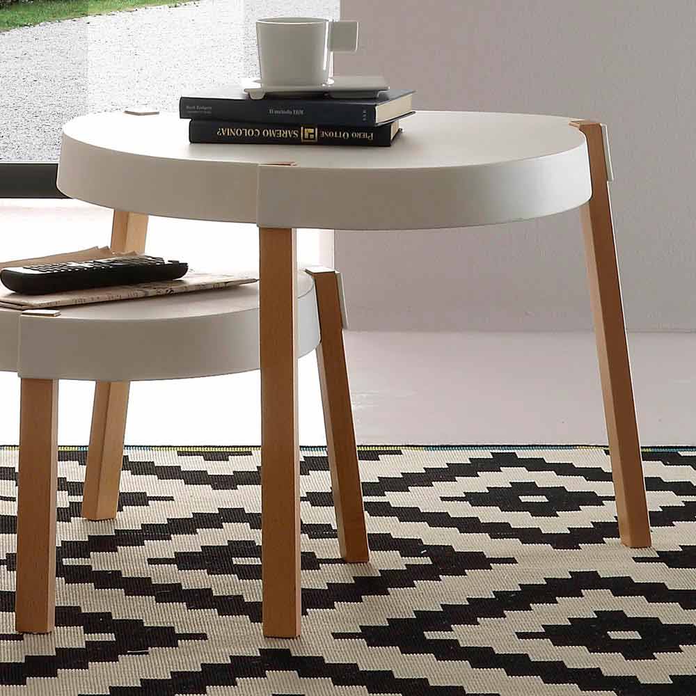 Mesita de salón de haya con tablero de polipropileno blanco Pineto