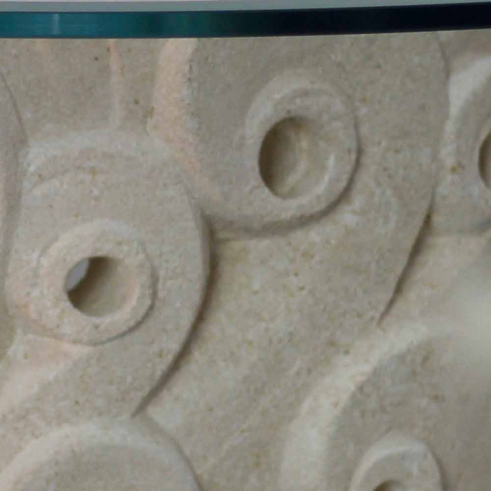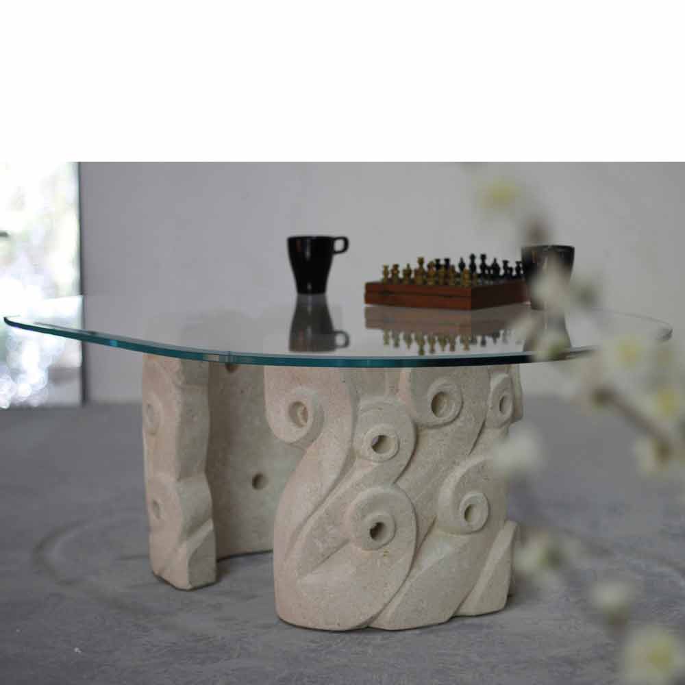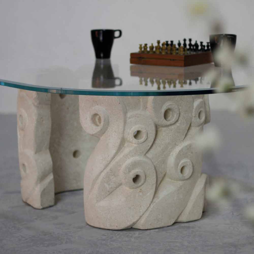 Mesita ovalada piedra Vicenza y cristal hecha a mano Lindos