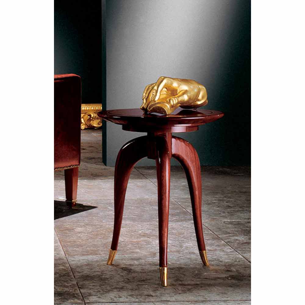 Mesita redonda de diseño en madera, diámetro 40 cm, Clay Clay es una mesa de café de diseño caracterizada por un estilo clásico, revisitado de una manera moderna. Es completamente artesanal en Italia. Mesa de centro redonda con 3 patas. Acabado en caoba natural pulida.