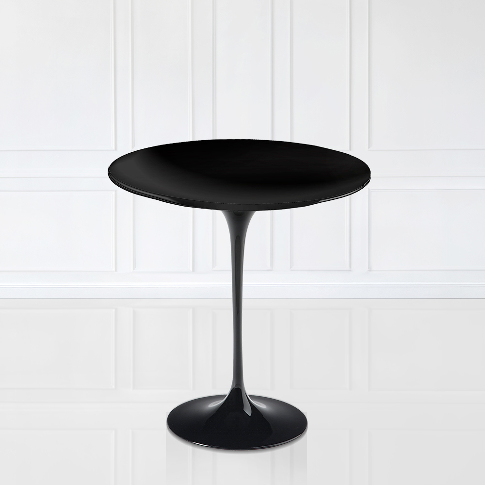 Mesa de centro íntegramente fabricada en Italia con tapa redonda en laminado líquido negro y base en aluminio pulido negro . Es un excelente elemento de funcionalidad y elegancia para cualquier ambiente de vida, siendo al mismo tiempo un elemento de diseño y un mueble fácil de usar. Esta mesa está realizada con materiales de excelente mano de obra que garantizan calidad y resistencia en el tiempo . La unión entre la encimera de laminado líquido y la base de aluminio pulido ofrece una solución decorativa de diseño sencillo y refinado, ideal para quienes aman decorar cualquier tipo de ambiente con gusto y linealidad. Este elemento se puede insertar en diferentes estilos de decoración, del clásico al moderno y al chic, gracias a su versatilidad y a la frescura de su estructura .