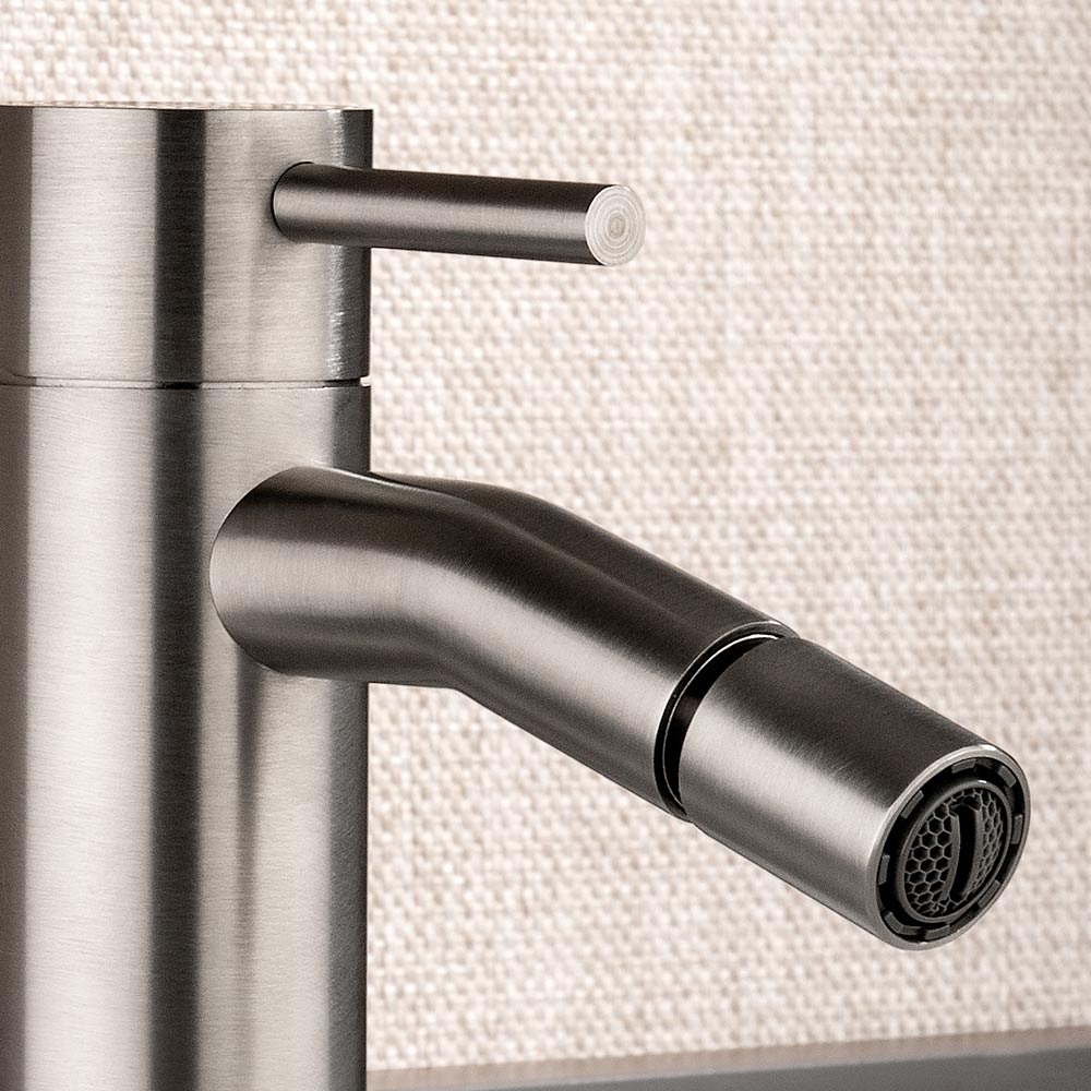 La característica distintiva de este modelo es el caño giratorio , que permite dirigir el flujo de agua con precisión, aumentando la comodidad durante el uso. Sin desperdicios, el diseño del mezclador se mantiene limpio y lineal, enfatizando una estética de sobria elegancia .