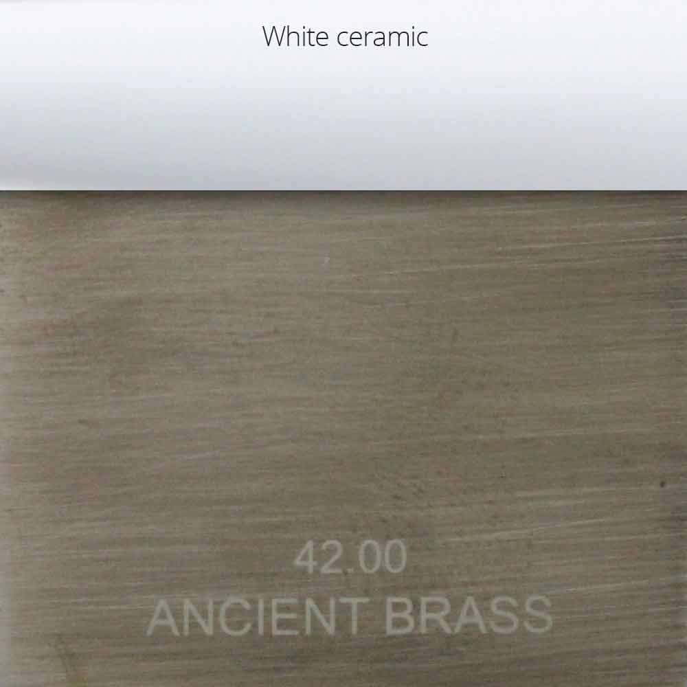 Latón antiguo brillante: acabado de latón antiguo cepillado pulido con inserciones de cerámica blanca en los mangos;