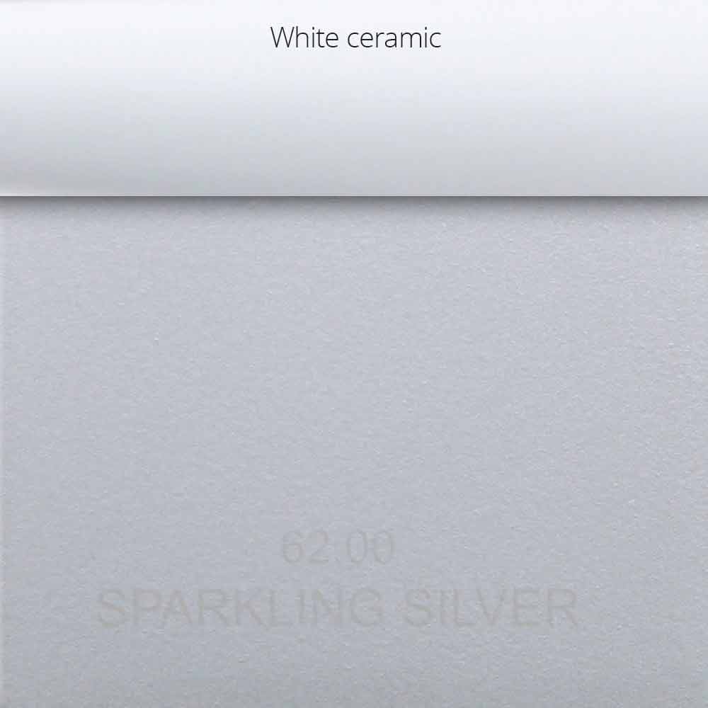 Sparkling Silver: acabado metálico plateado mate con inserciones de cerámica blanca en los mangos;