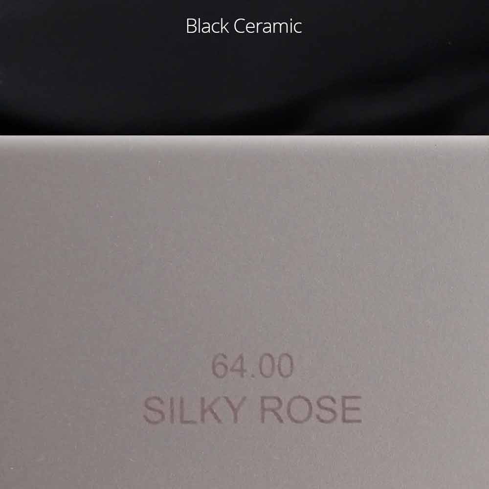 Silky Rose: acabado metálico rosa mate con inserciones de cerámica negra en los tiradores;