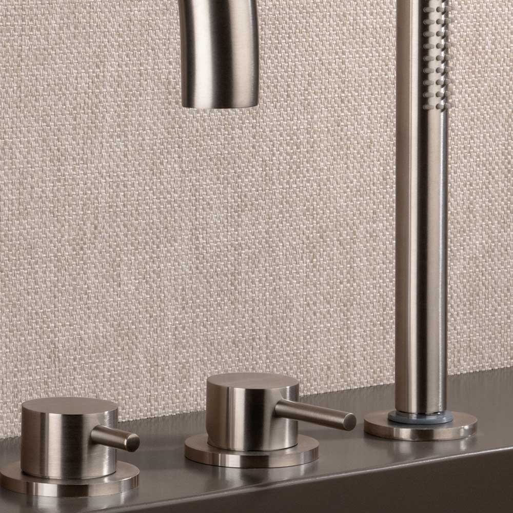 Limpieza: Para mantener el brillo de sus griferías, seque con un paño suave los restos de agua que puedan convertirse en cal después de cada uso. Los restos de cal se forman sobre todo en esquinas y juntas. Para eliminarlos, utilice un detergente delicado pulverizado sobre un paño y NUNCA directamente sobre la zona afectada. Lave las superficies con agua tibia y jabón, enjuáguelas bien y luego seque bien con un paño suave siguiendo el sentido del cepillado.