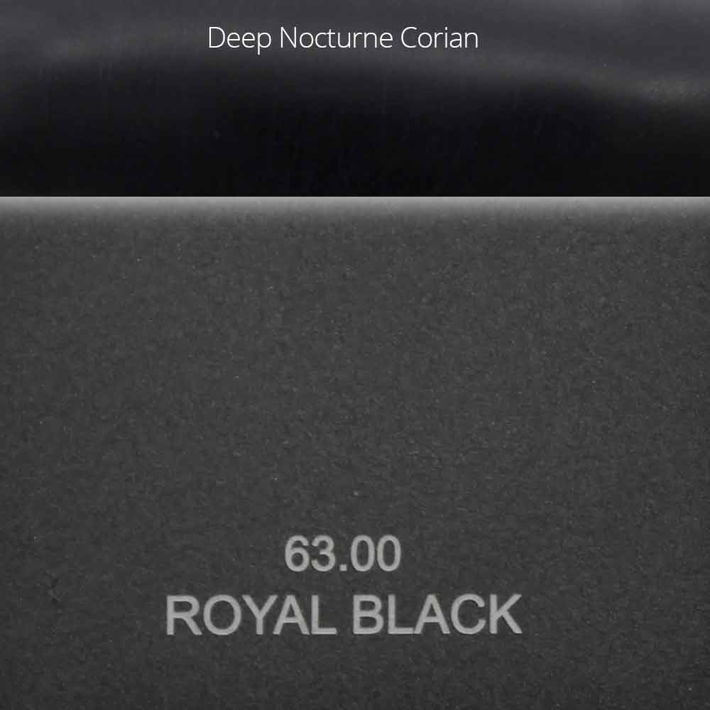 Burning Black + Deep Nocturne Corian®: acabado negro mate con elementos DuPont ™ Corian® negros;