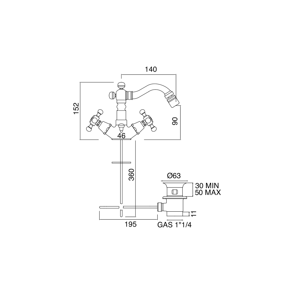 Mezclador de bidé de un orificio en latón fabricado en Italia Ursula, diseño vintage.