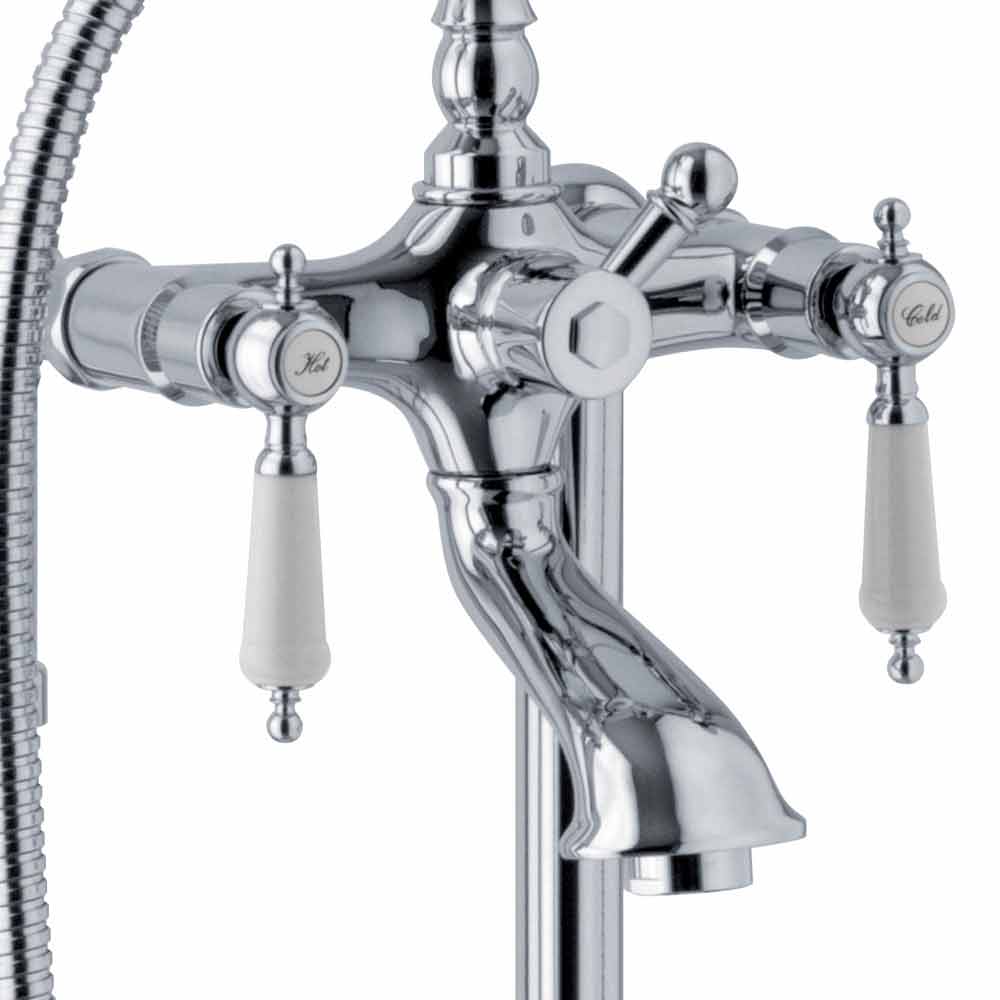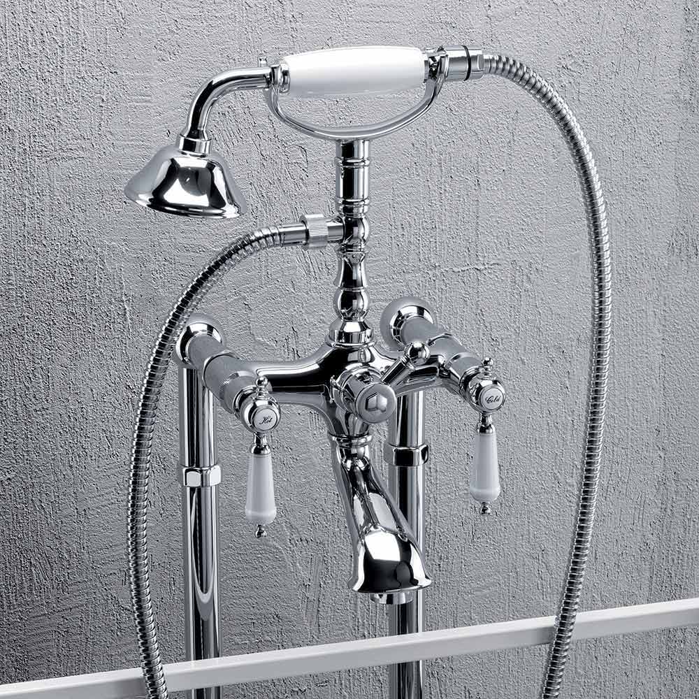 Mezclador de pie para bañera en latón con diseño clásico Made in Italy.