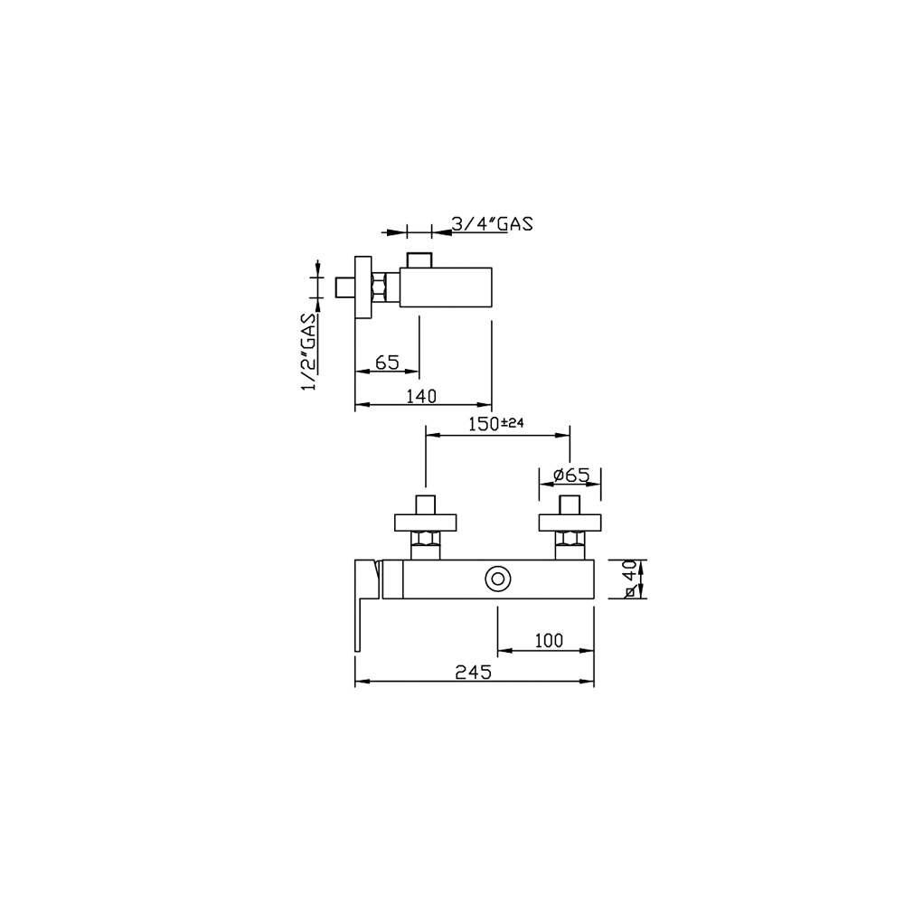 Mezclador de ducha exterior con conexión a columna, sin columna. Fabricado íntegramente en Italia en latón ; con materiales de alta calidad cumpliendo con las normas europeas.