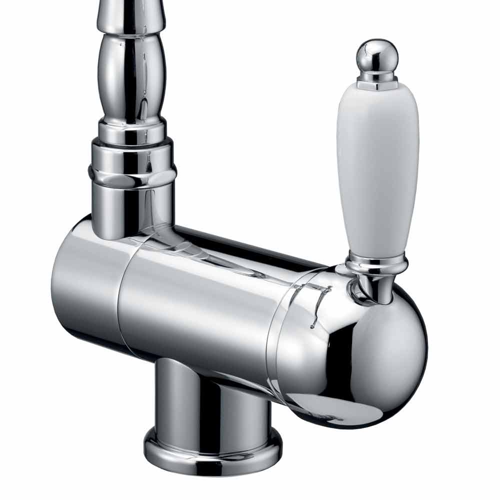 Mezclador para fregadero de cocina Made in Italy fabricado en latón reclinable con cañón antiguo ajustable. Un diseñoclásico y refinado distingue este maravilloso artículo, ideal para dar vida a un mueble de fuerte personalidad caracterizado por la funcionalidad y la elegancia . El producto también asegura una atención adicional al medio ambiente al ofrecer un tipo de cartucho diseñado y creado precisamente para ahorrar energía. Se define ES y suministra agua fría cuando la palanca está levantada en la posición central, evitando así la solicitud de agua caliente a la caldera, permitiendo así un consiguiente ahorro energético.