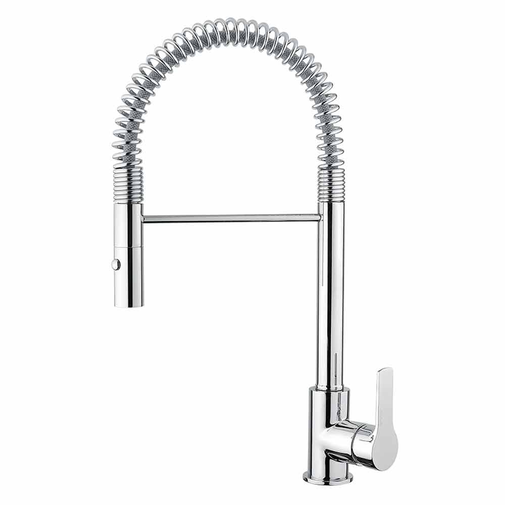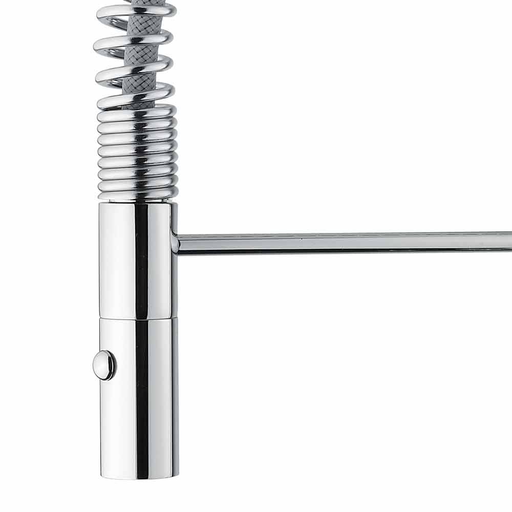 Mezclador de fregadero de cocina Made in Italy fabricado en latón cromado . Gracias al caño orientable con muelle y la ducha de 2 chorros, funcionalidad y diseño se unen para dar vida al producto perfecto para una cocina con un aspecto moderno e innovador sin dejar de lado un uso extremadamente sencillo y práctico. El producto también garantiza una atención adicional al medio ambiente al ofrecer 2 tipos de cartuchos diseñados y creados precisamente para ahorrar energía. El primero se llama ECO y requiere que la perilla tenga dos posiciones de apertura. En el primer bloque obtienes un caudal de agua reducido en un 50% mientras que con una apertura más ancha obtienes más agua, lo que te permite ajustar el caudal de acuerdo a nuestras necesidades evitando desperdicios. El segundo tipo ES definido suministra agua fría cuando la palanca está levantada en la posición central evitando así la solicitud de agua caliente a la caldera permitiendo así un consiguiente ahorro energético.