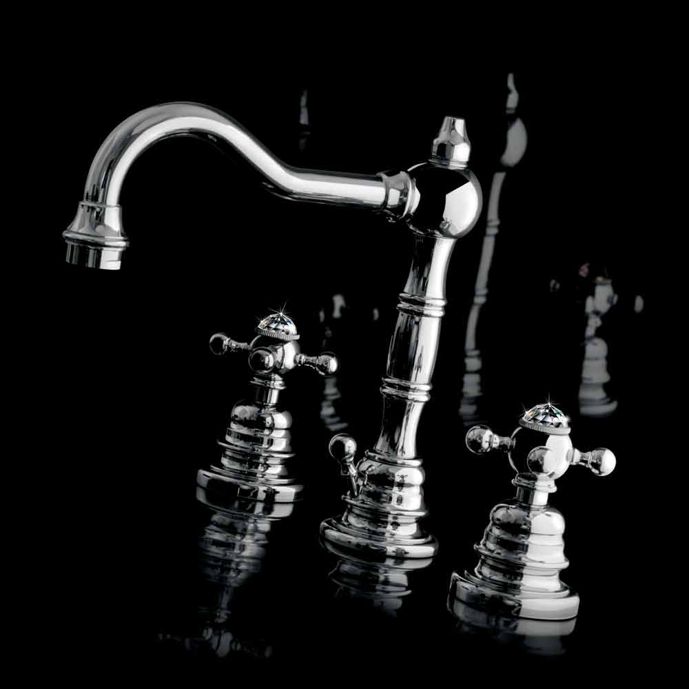 Mezclador de lavabo de baño de diseño con tres orificios en latón cromado Made in Italy.