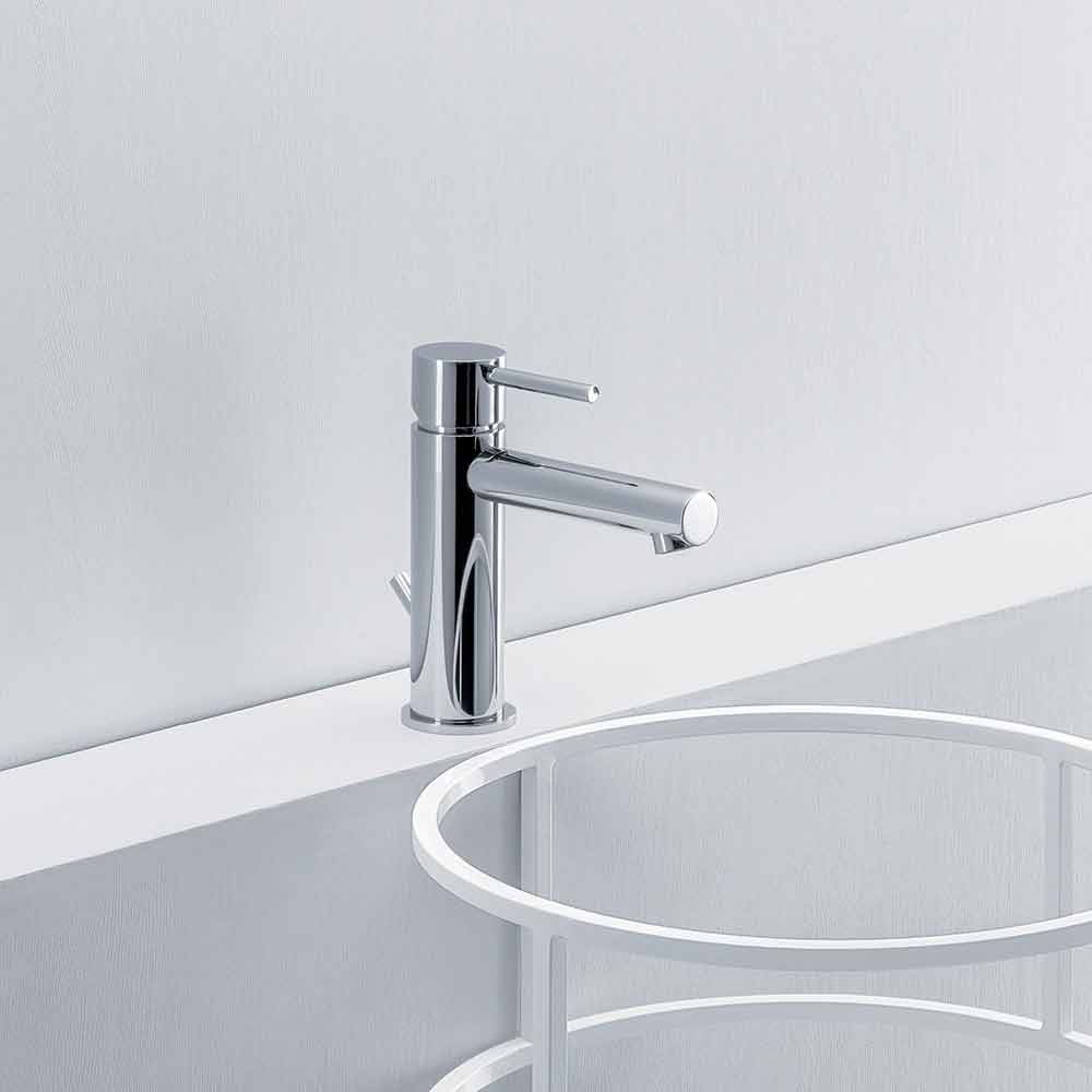 Mezclador de lavabo de baño Made in Italy en latón cromado con cartucho abierto Kerox de Ø 25 mm. Disponible tanto en la versión con y sin desagüe, es sumamente versátil y capaz de satisfacer todas las necesidades de forma impecable.