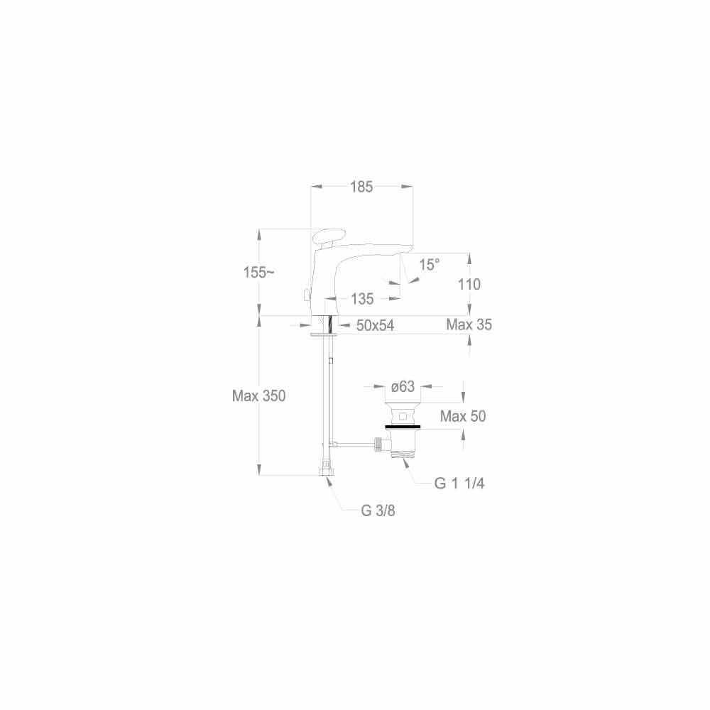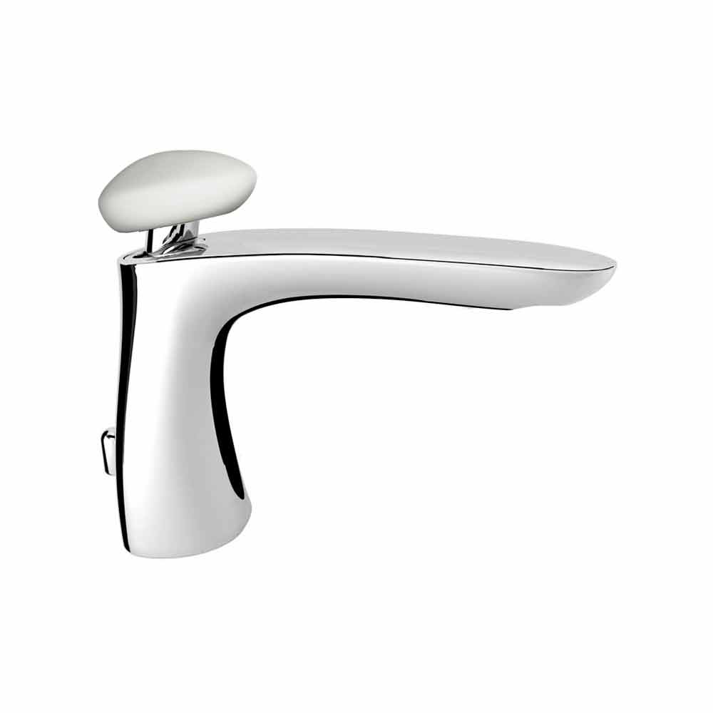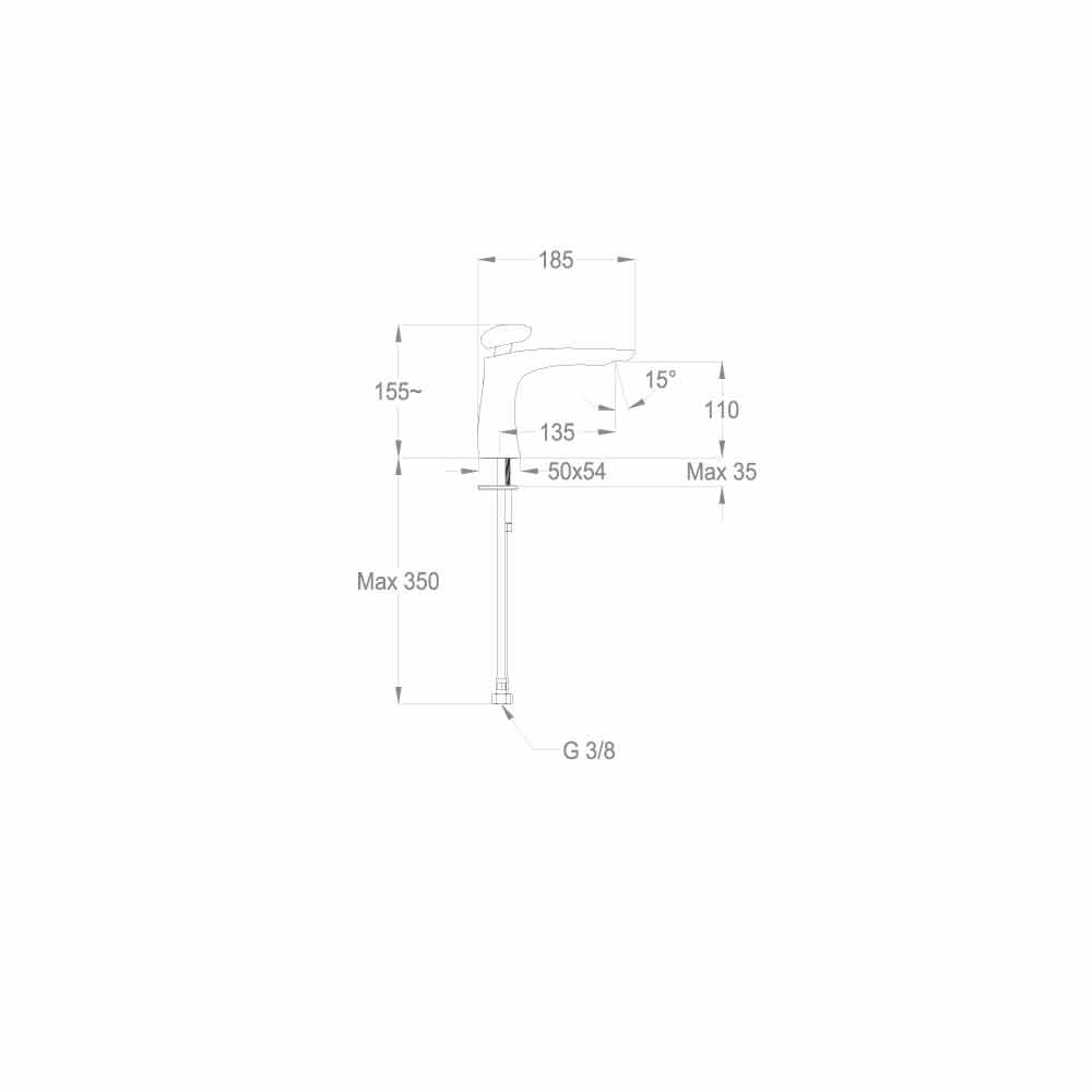 Mezclador de lavabo de sobre encimera con diseño ultra moderno y creativo de 155 mm de altura y con una distancia entre ejes de 135 mm. Totalmente producido en Italia con materiales de alta calidad que cumplen con los estándares europeos. Este mezclador prevé la instalación en el suelo, equipado con aireador de caché y cartucho de disco cerámico; recomendado por su sistema Energy Saving por ahorro de agua de 6L / min y por sus conexiones flexibles.