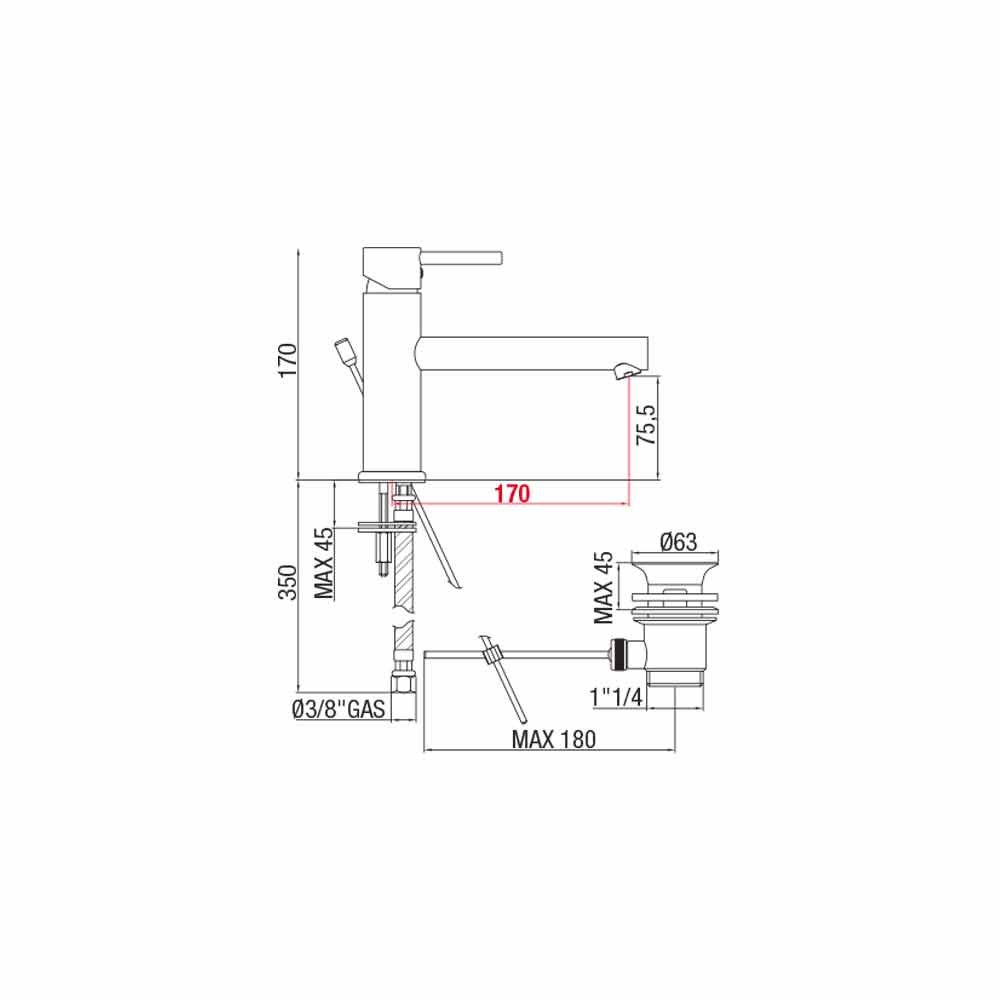 Mezclador para lavabo de baño Made in Italy en latón cromado con caño de 170 mm de distancia entre ejes y desagüe de 1 '' 1/4 completo con cartucho Kerox abierto de Ø 25 mm. La sencillez y el diseño actual hacen que este artículo sea único y extremadamente versátil , ideal para espacios de baño con un gusto contemporáneo que requieren complementos de decoración discretos y elegantes sin renunciar a un estilorefinado y original .