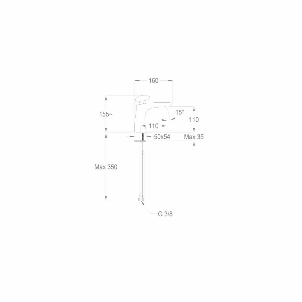 Mezclador de lavabo de sobre encimera de diseño ultramoderno y vanguardista de 155mm de altura y con un centro de 110mm. Totalmente producido en Italia con materiales de alta calidad que cumplen con los estándares europeos. Este mezclador está instalado en la parte superior, equipado con aireador de caché y cartucho de disco cerámico; recomendado por su sistema Energy Saving por ahorro de agua de 6L / min y por sus conexiones flexibles.