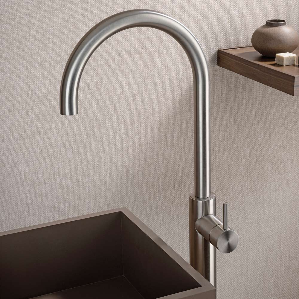 Mezclador de lavabo de pie con caño alto giratorio Made in Italy