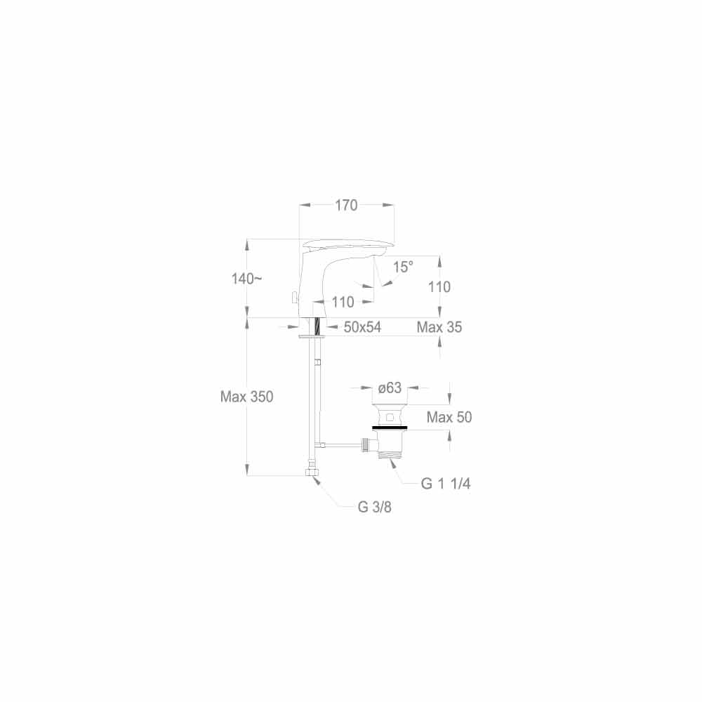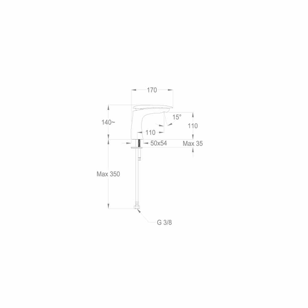 Mezclador de lavabo ultramoderno de diseño minimalista de 140 mm de altura y con una distancia entre ejes de 110 mm fabricado íntegramente en Italia con materiales de alta calidad conforme a las normas europeas. Este mezclador prevé la instalación en el suelo, equipado con aireador de caché y cartucho de disco cerámico; recomendado por su sistema Energy Saving por ahorro de agua de 6L / min y por sus conexiones flexibles.