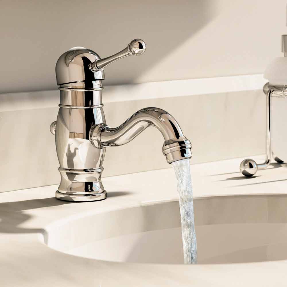 Mezclador de lavabo de sobre encimera de diseño clásico en latón cromado ; 150 mm de alto y con una distancia entre ejes de 130 mm, con desagüe y mecanismo pop-up. Totalmente producido en Italia con materiales de alta calidad que cumplen con los estándares europeos. Este mezclador se puede instalar en la parte superior, equipado con un aireador y cartucho de disco cerámico; recomendado por su sistema Energy Saving por ahorro de agua de 6L / min y por sus fijaciones rígidas.