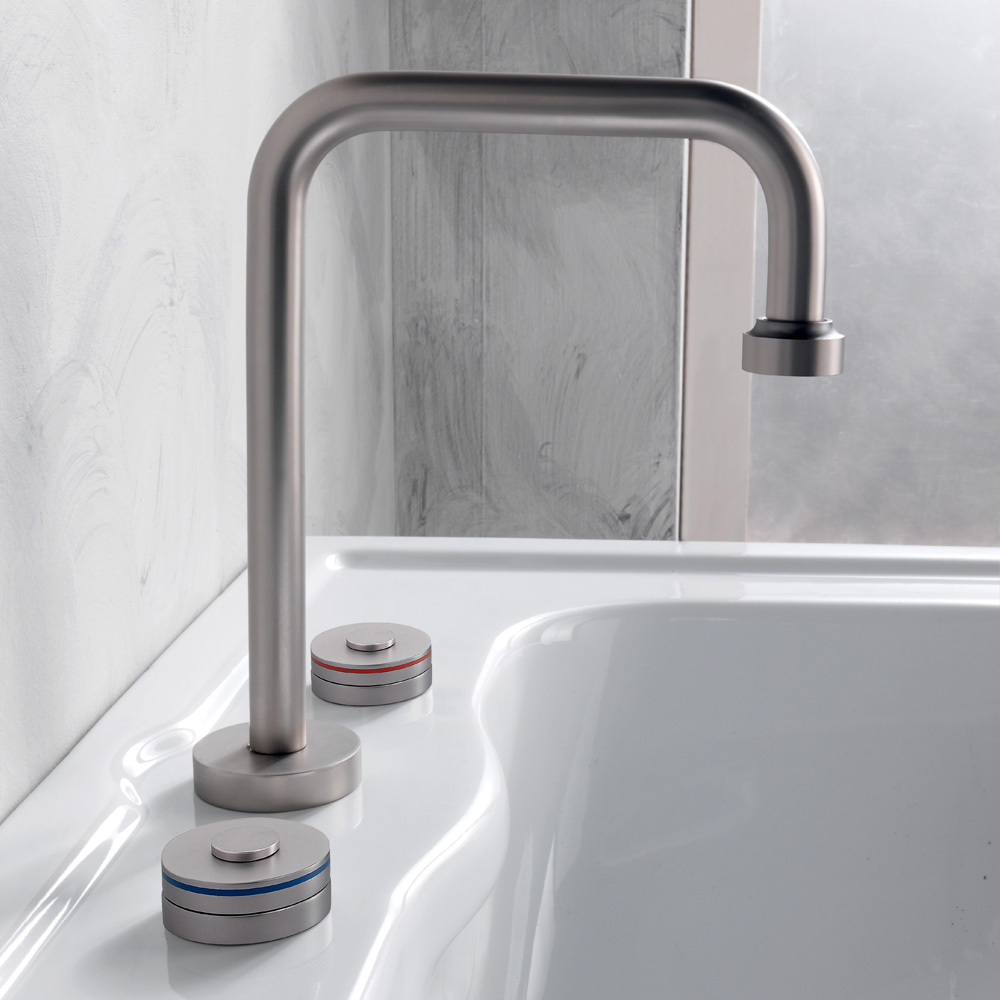 Moderno mezclador de lavabo de latón de 3 orificios con desagüe Made in Italy