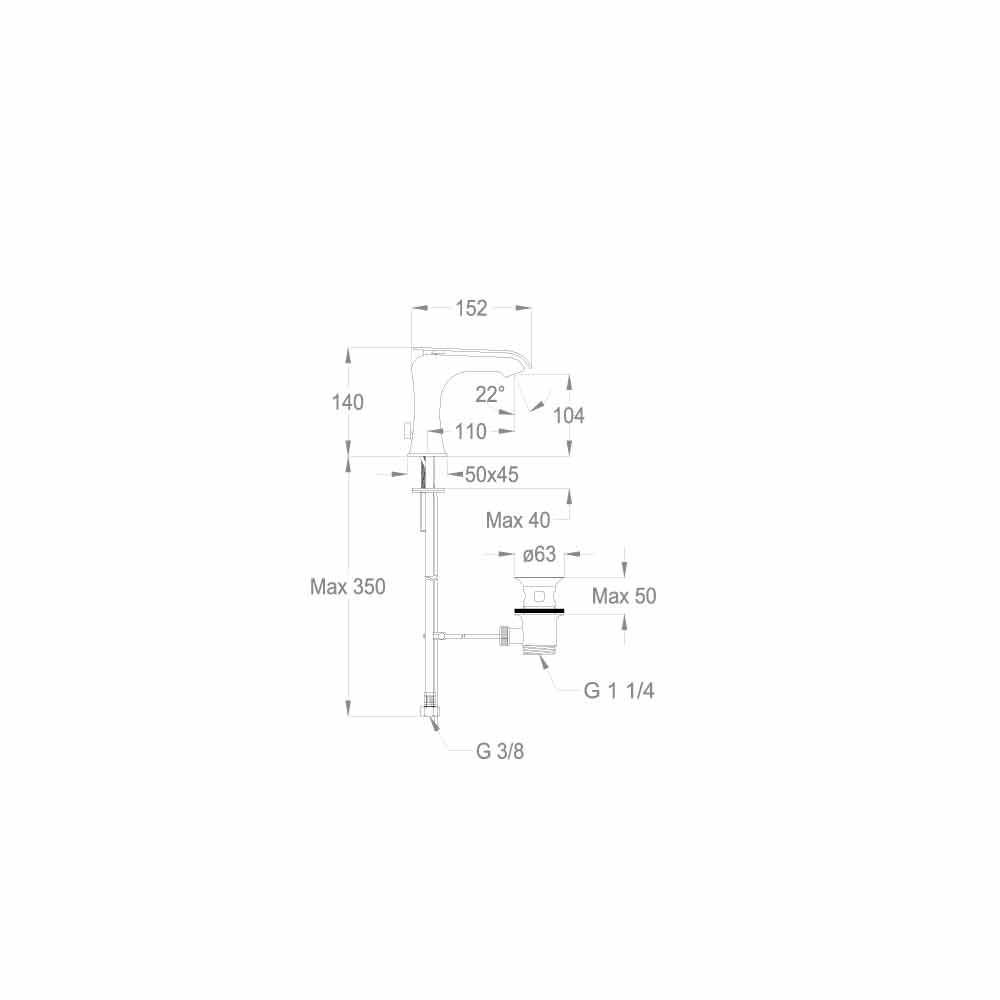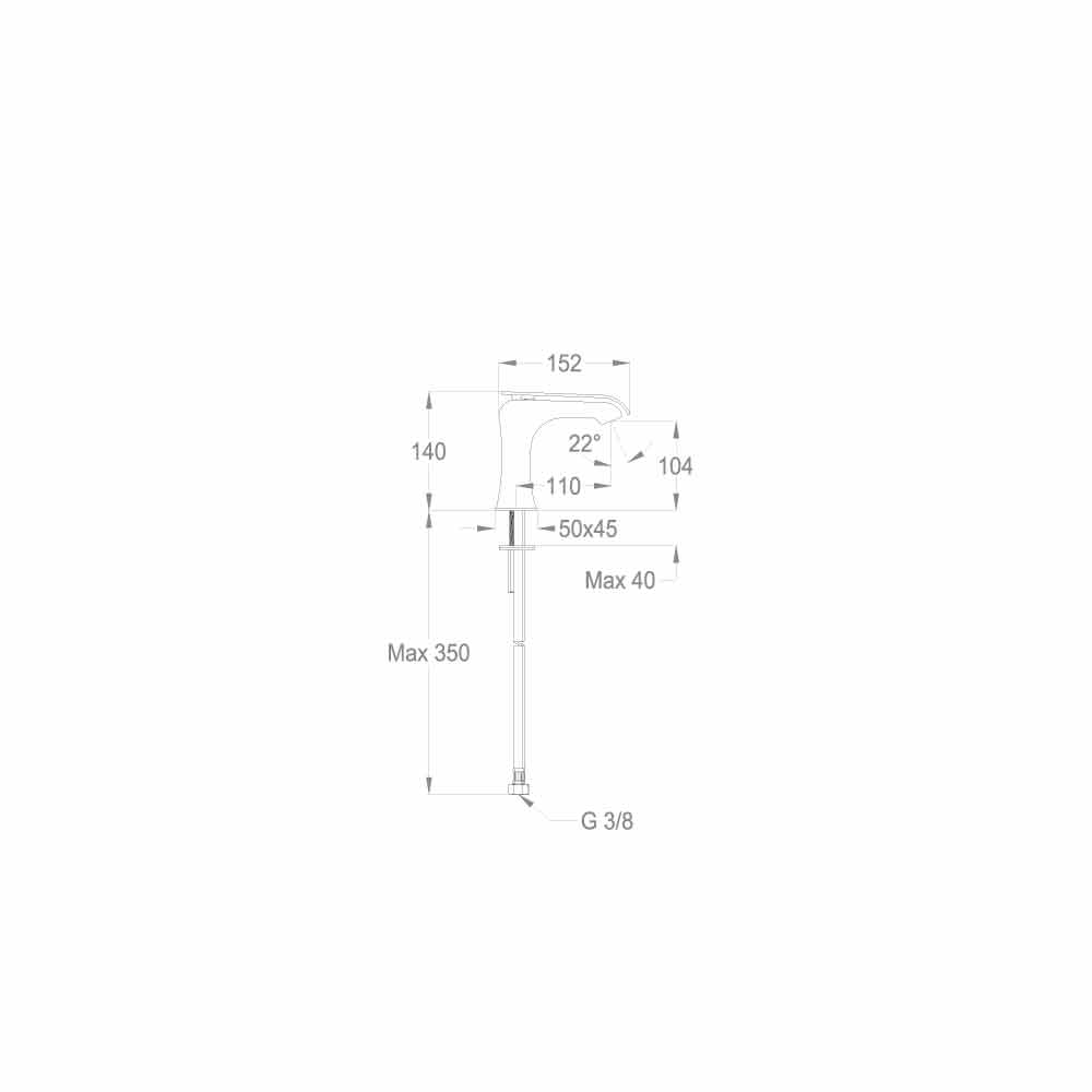 Mezclador de lavabo de sobre encimera de diseño ultramoderno en acabado latón cromado de 140 mm de altura y con una distancia entre ejes de 110 mm. Totalmente producido en Italia con materiales de alta calidad que cumplen con los estándares europeos. Este mezclador prevé la instalación en el suelo, equipado con aireador de caché y cartucho de disco cerámico; recomendado por su sistema Energy Saving por ahorro de agua de 6L / min y por sus conexiones flexibles.