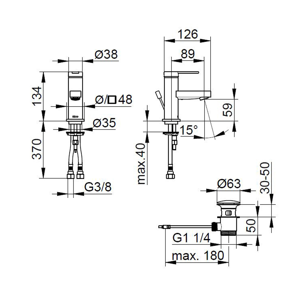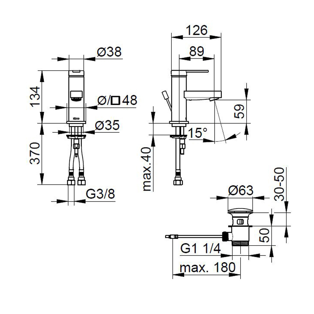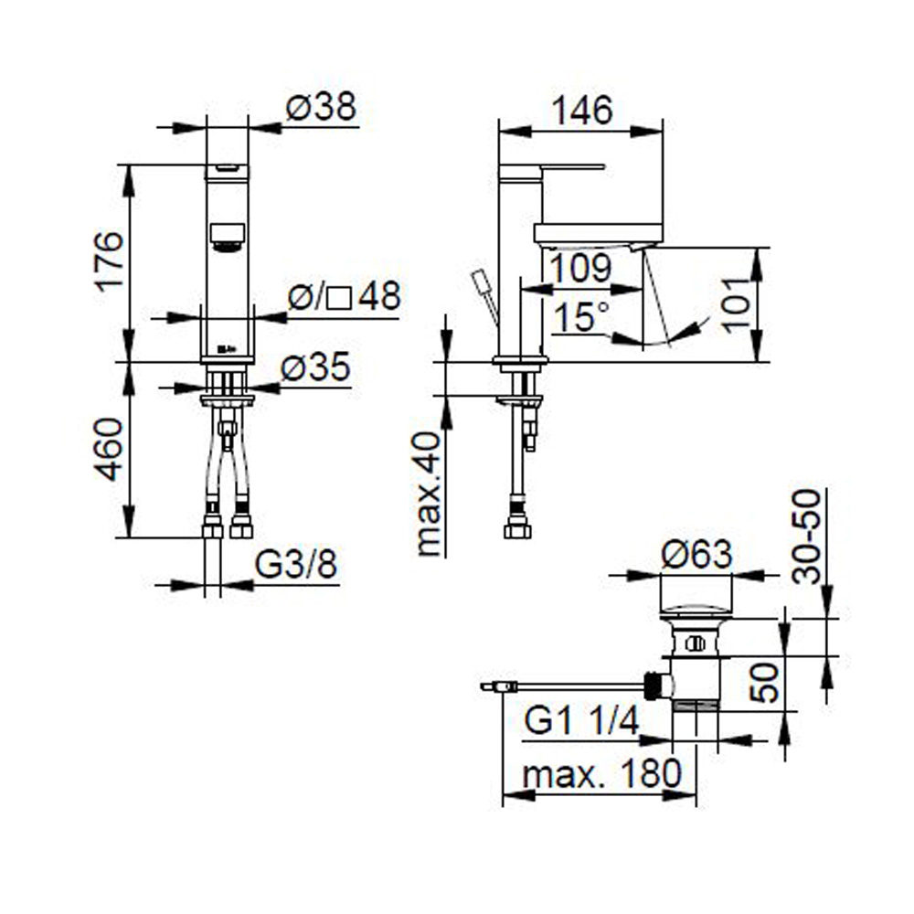 con o sin desagüe emergente de 1 1/4 pulgada;