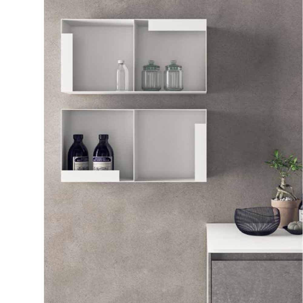 Finalmente, la composición se ofrece en una serie de nuevos acabados que incluyen laminados HPL Unicolor con decoraciones que simulan el roble en cuatro tonalidades diferentes y la piedra en tres tonalidades naturales. Para acompañarlos, una amplia gama de lacados que tienen como objetivo crear un programa completo capaz de satisfacer un amplio abanico de usuarios y tipologías espaciales.