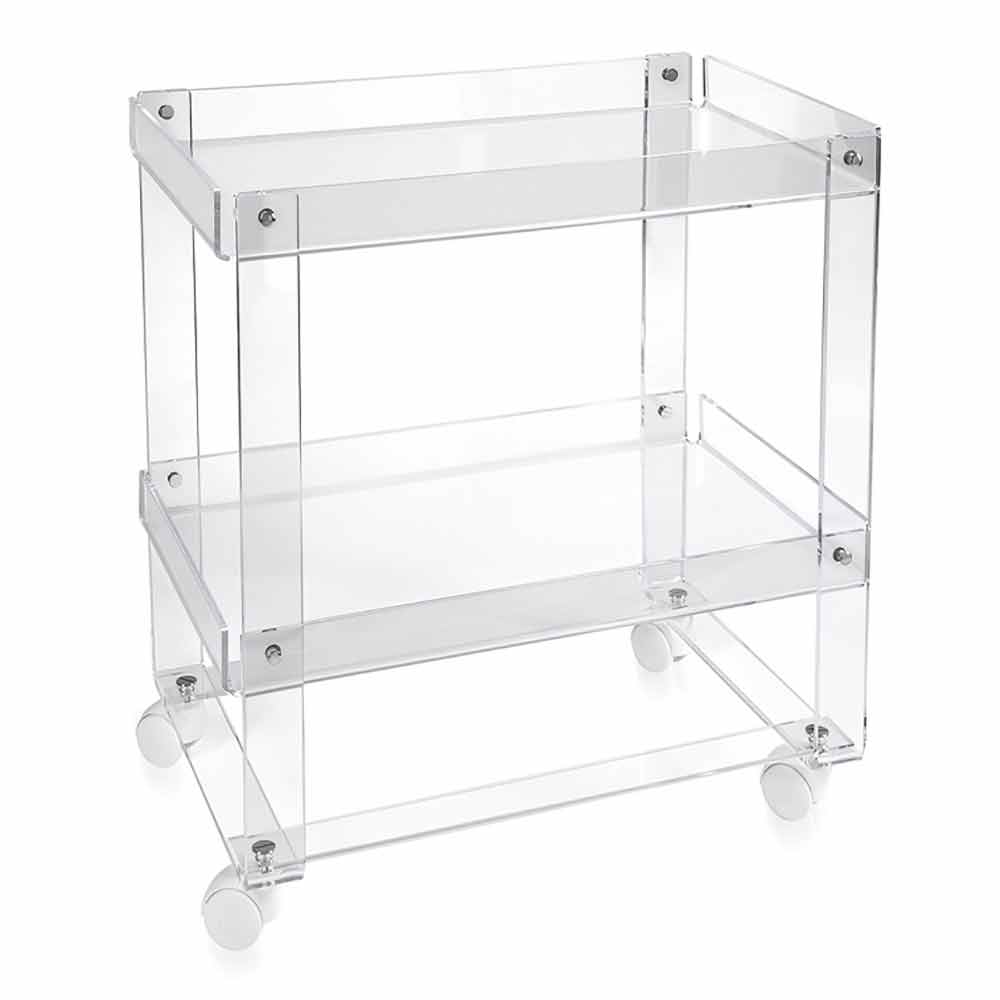 Carrito de comida L 60.5 cm: Diso Práctico y versátil carrito de comida hecho con plexiglás 100% de polímero virgen, compuesto por 2 estantes, lo que lo hace muy útil como carrito auxiliar en el espacio doméstico. Su brillo y brillo se conservan inalterados y no se modifican con el tiempo. El plexiglás PMMA utilizado de polímero virgen no es tóxico, es hipoalergénico, no tiene sabor y es antibacteriano. 100% reciclable. Pensado, diseñado y fabricado en Italia con materiales italianos.