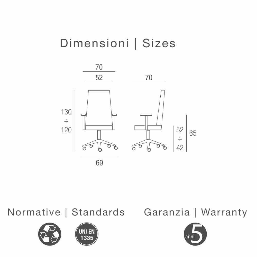 | Medidas | L.tot L.seduta 69cm x 52 cm x H.tot 130/120 cm x h. asiento 52 / 42cm x h.bracc.65cm |