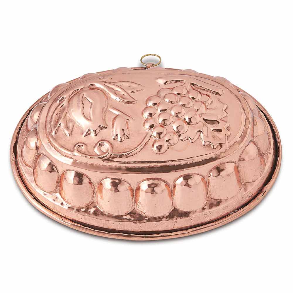 Bandeja de horno ovalada con decoración de uvas hecha a mano en Italia de cobre estañado.