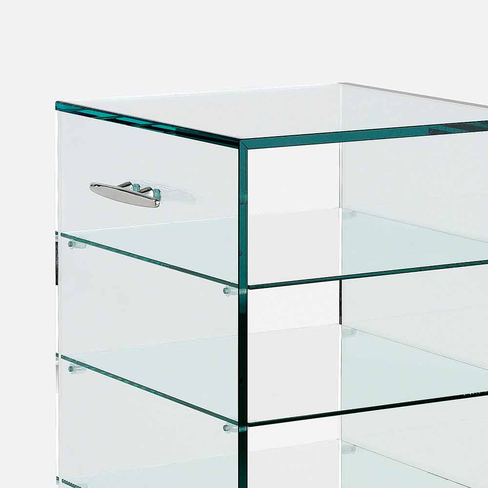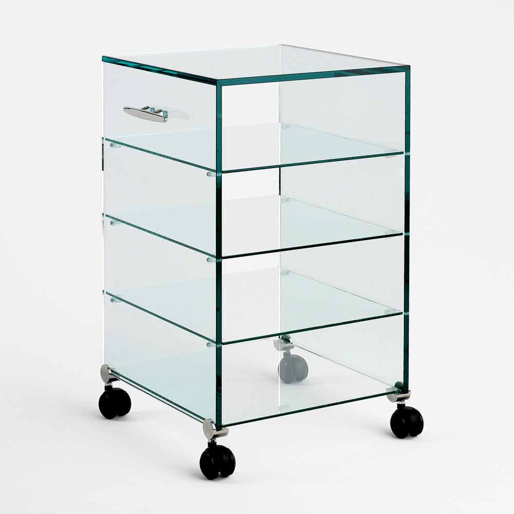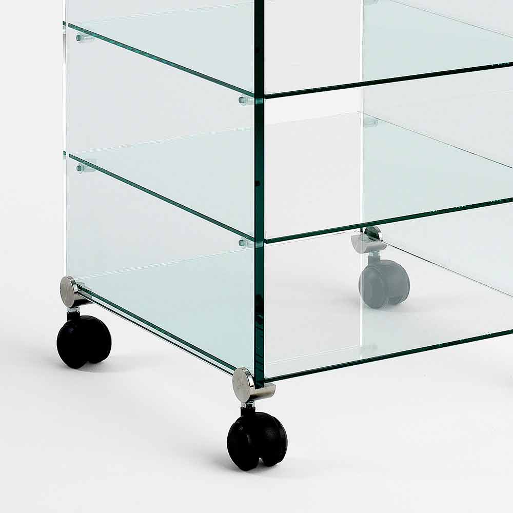 Hecho a mano en Italia con materiales de alta calidad , es un accesorio independiente sobre ruedas y está disponible en varios tamaños con 3, 6, 8 o 10 estantes.