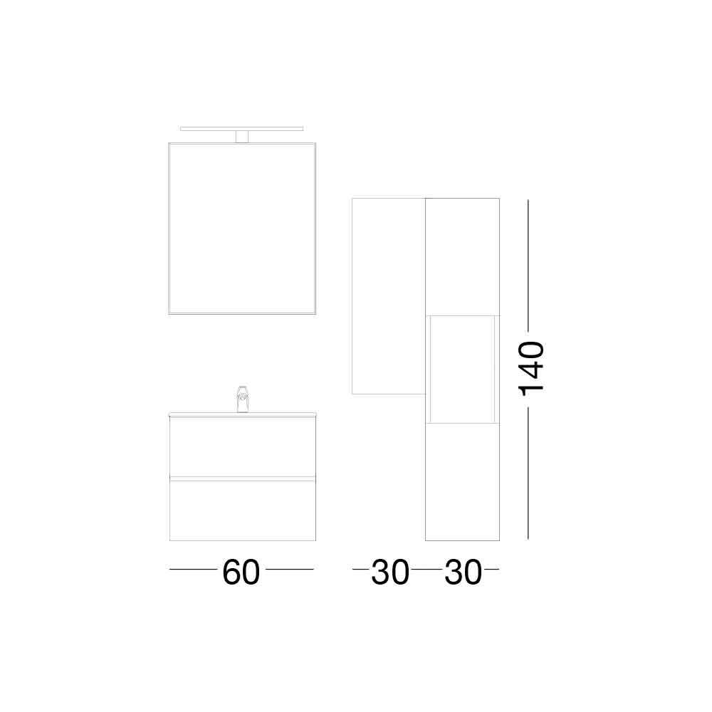 | Medidas | base móvil + lavabo: L 60 x P 46 x H 55 cm; Columna: L 30 x P 17 x H 140 cm; unidad de pared: L 30 x P 17 x H 80 cm |