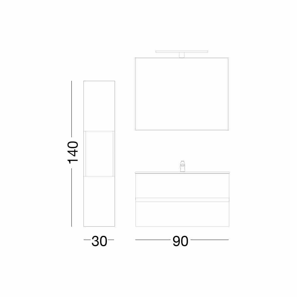 | Medidas | Base móvil + lavabo: L 90 x P 46 x H 55 cm Colonna: L 30 x P 30 x H 140 cm |