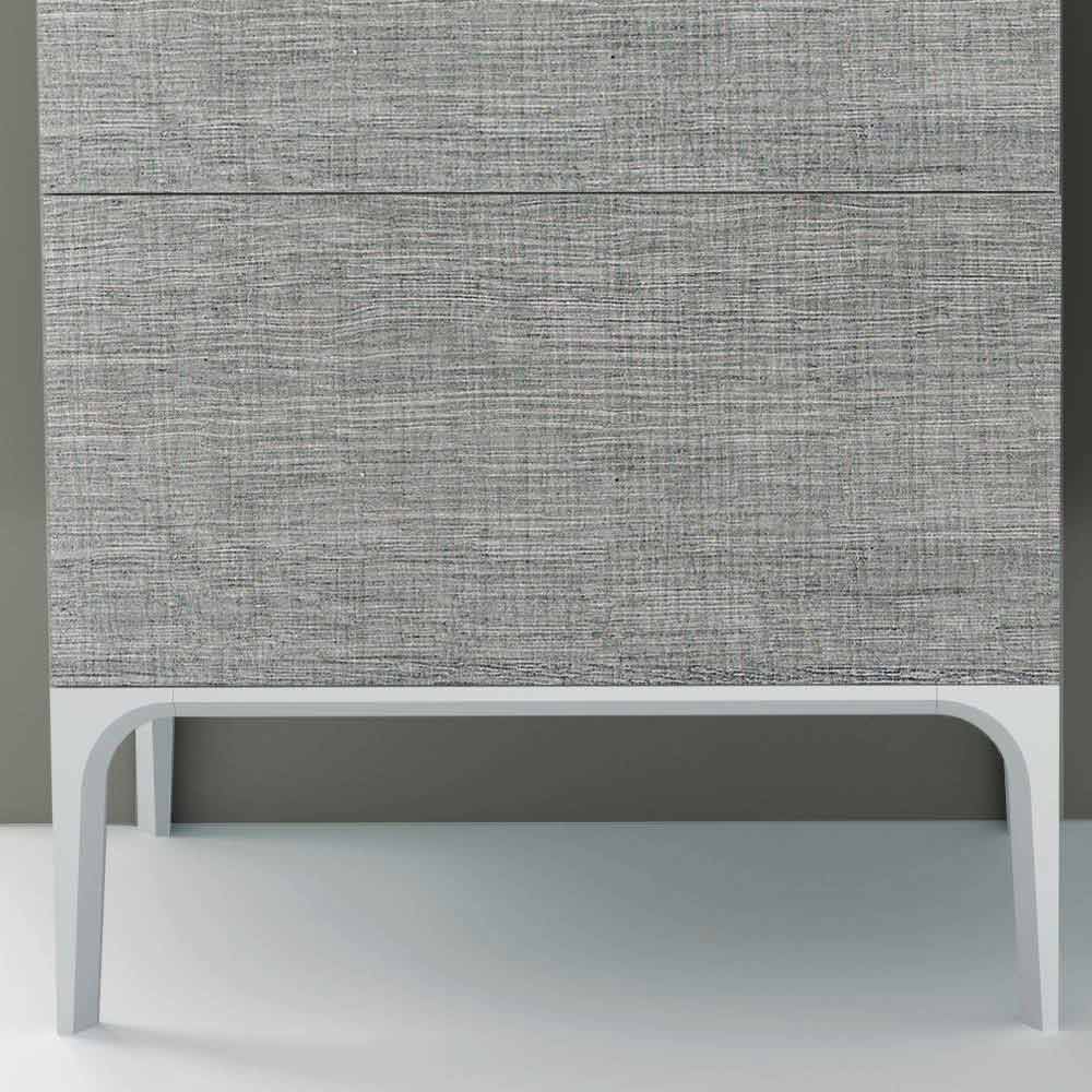 Elegante mueble lavabo de 2 cajones de líneas sólidas y armoniosas en madera ecológica con pies en madera maciza gris perla. Tapa de cerámica integrada. Disponible en diferentes acabados. El mueble de baño Ambra expresa elegancia y calibre entre la modernidad y la tradición con arquitecturas cálidas, sólidas y armoniosas y pies con superficies multifacéticas en madera maciza.