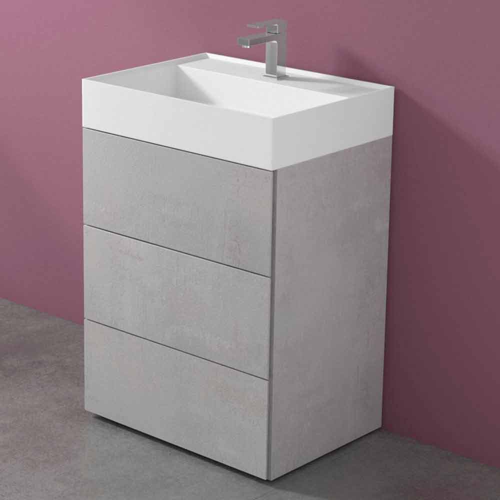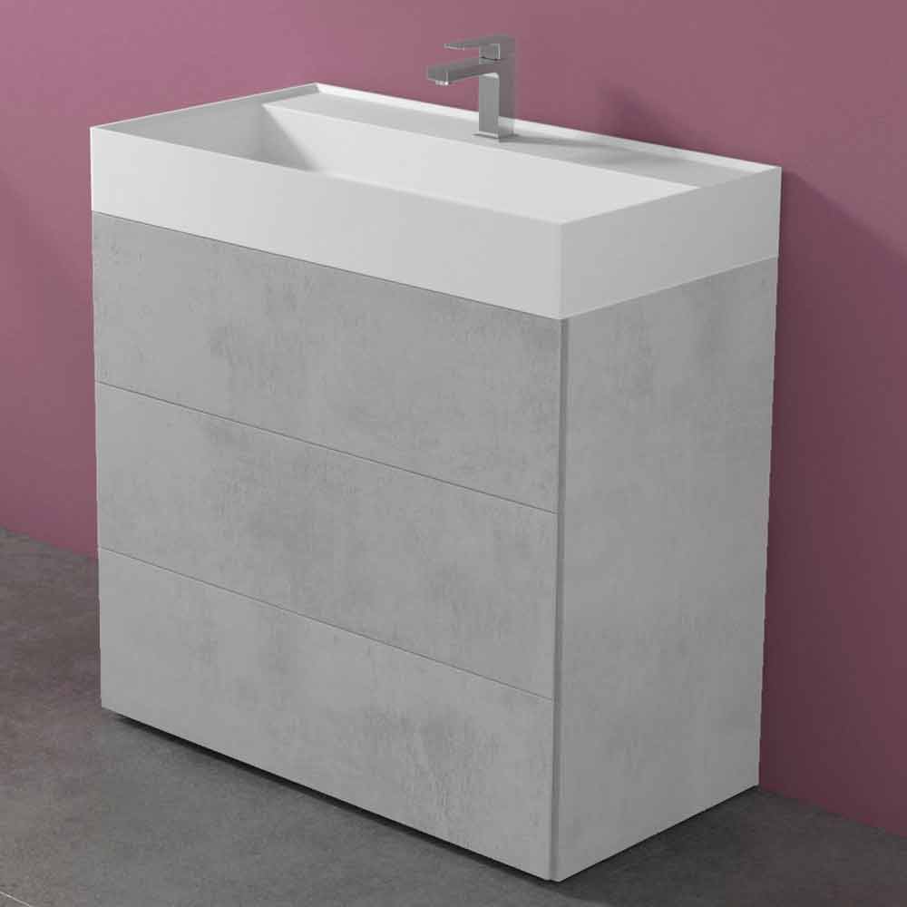 Mueble de baño con lavabo, diseño moderno en laminado con 3 cajones en diferentes colores y tamaños, made in Italy.