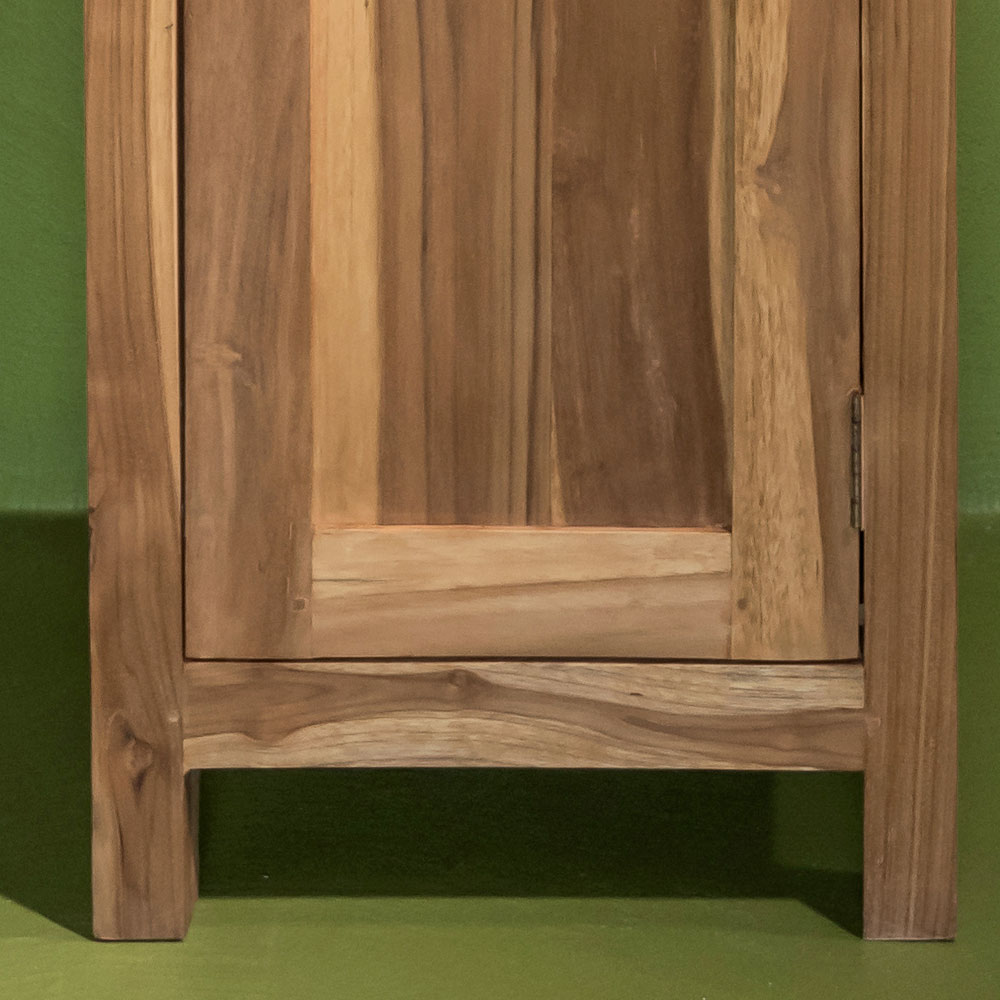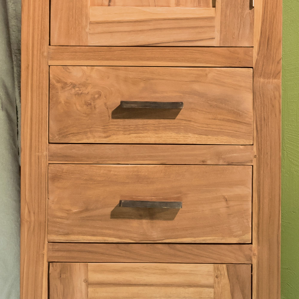 Este mueble de baño de teca maciza es una solución elegante y funcional, ideal para amueblar su baño con un estilo natural y refinado. Su esbelta estructura y su fabricación artesanal realzan la auténtica veta de la madera , aportando calidez y carácter incluso a los espacios más pequeños.