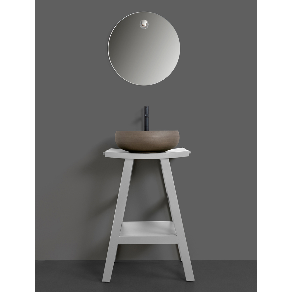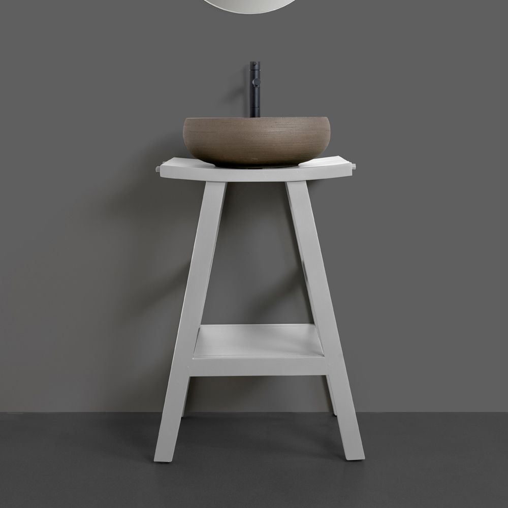 Mueble de baño con estructura en teca natural reciclada pintada de gris.