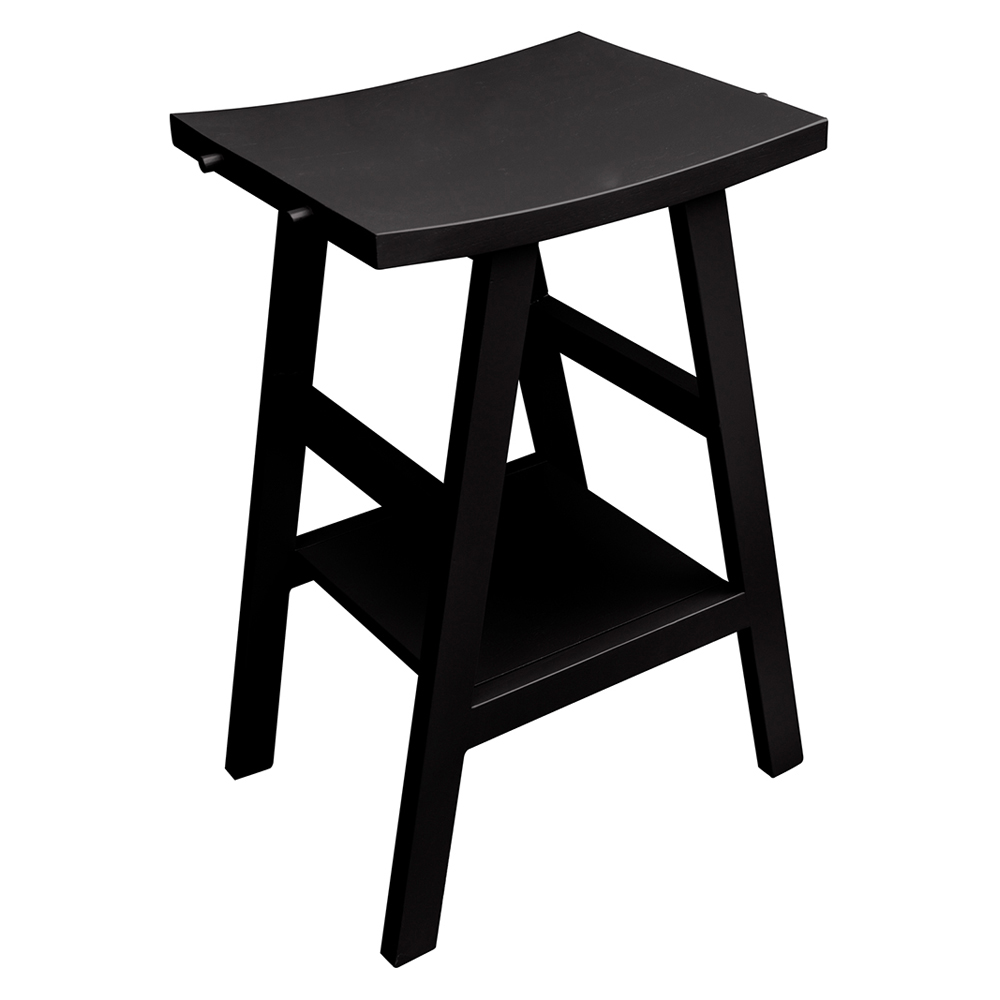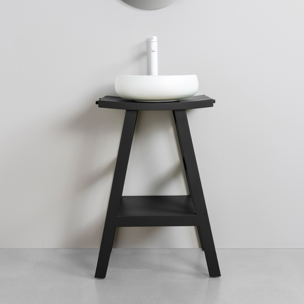 Mueble de baño con estructura de teca negra con ganchos laterales y balda.