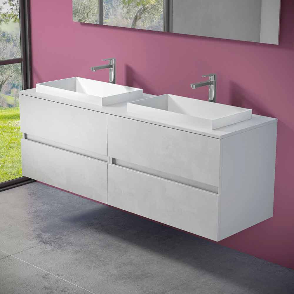 Se trata de un mueble de baño suspendido con doble lavabo encastrado que se caracteriza por un diseño moderno y atemporal , prestando especial atención tanto a la estética y los detalles como a la practicidad y funcionalidad.