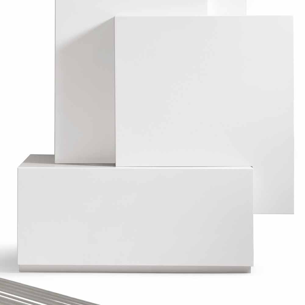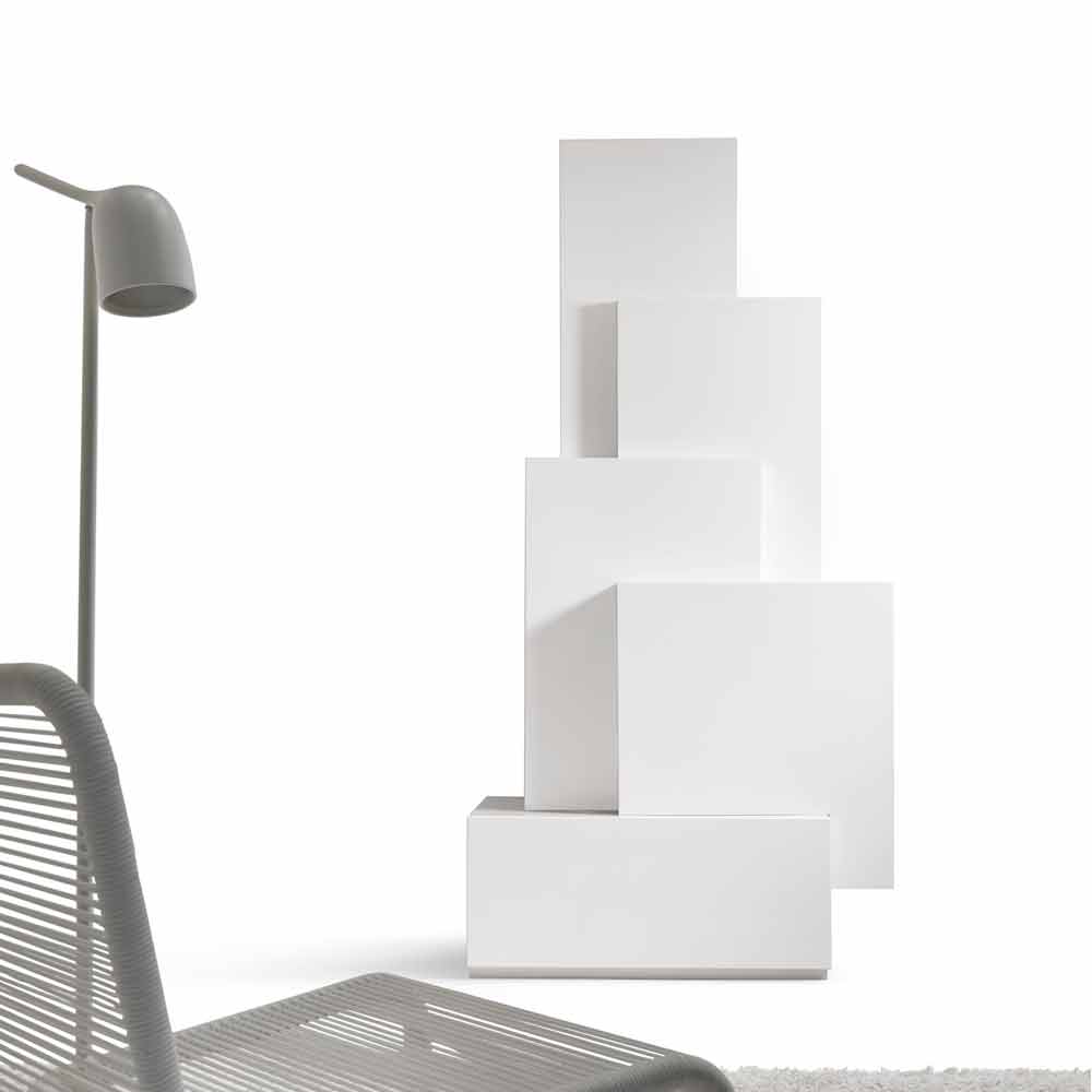 Mueble de suelo compuesto por 5 elementos apilables de MDFlacado blanco mate.