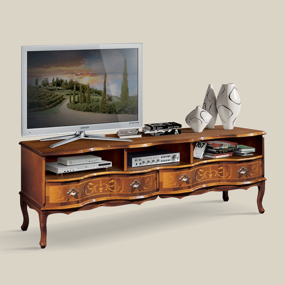 Mueble TV de madera de estilo clásico con compartimentos y cajones, Made in Italy.