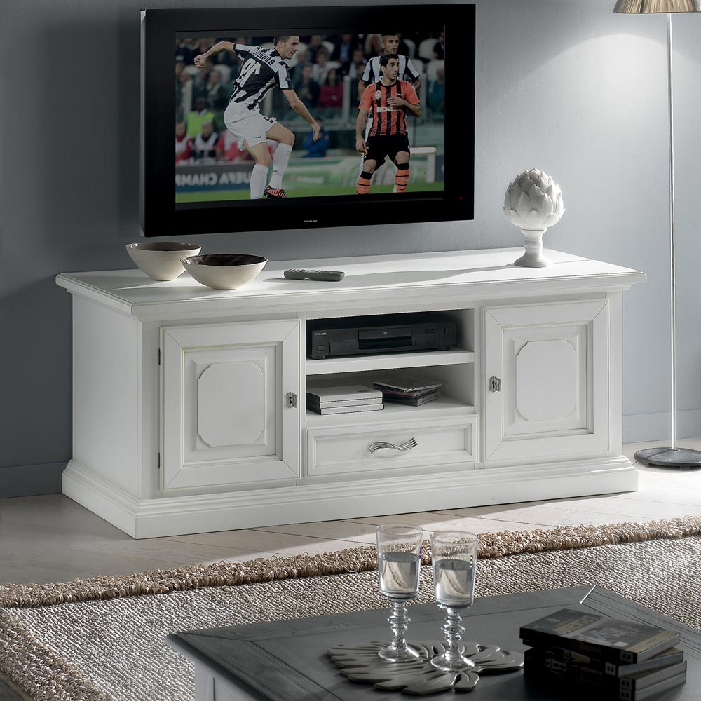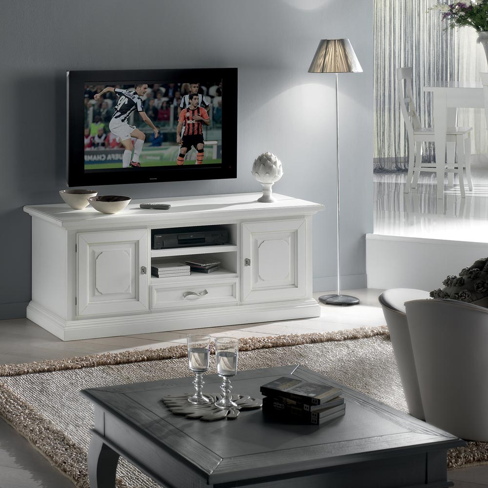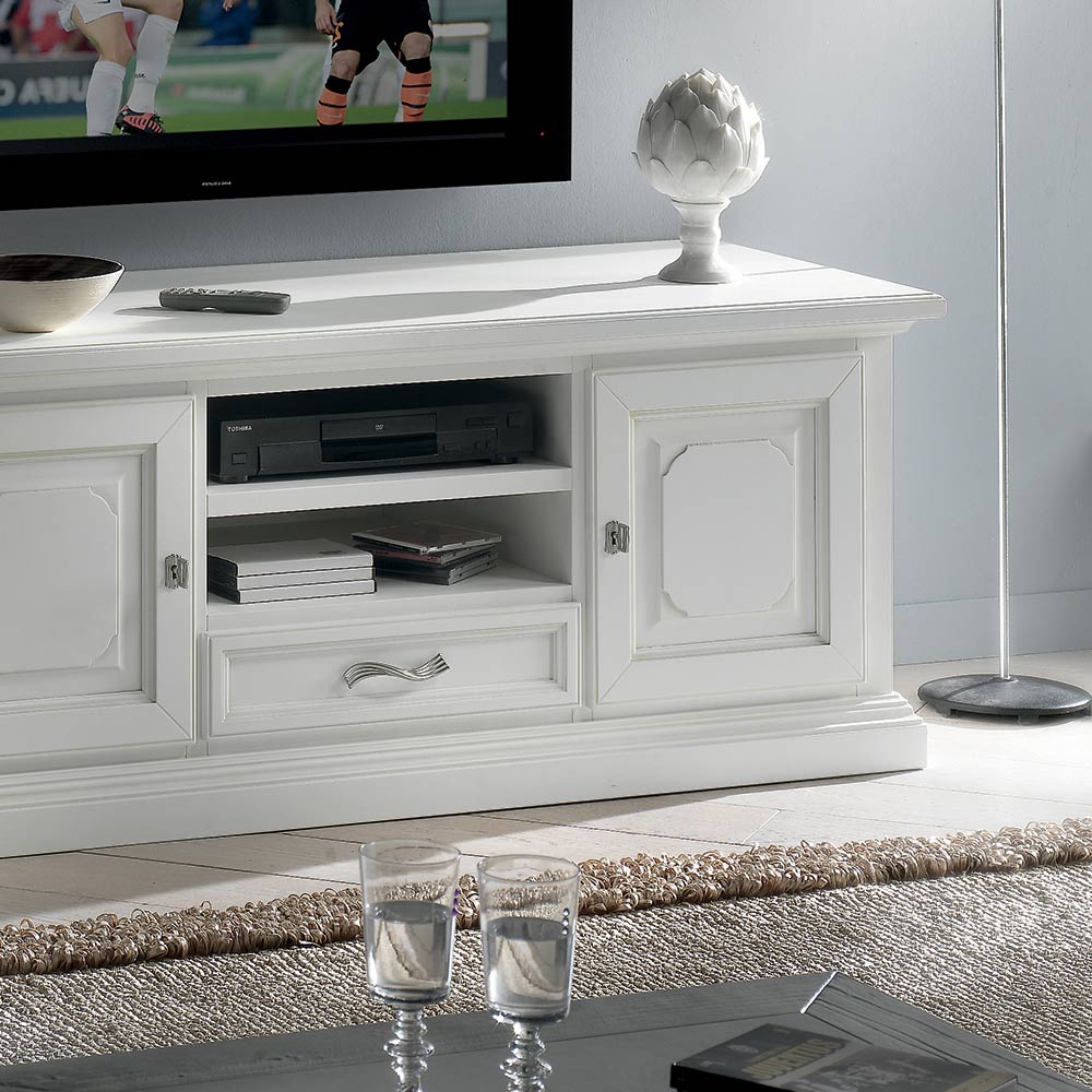 Mueble TV con 2 compartimentos abiertos y 2 puertas lacadas en blanco Made in Italy - Atai