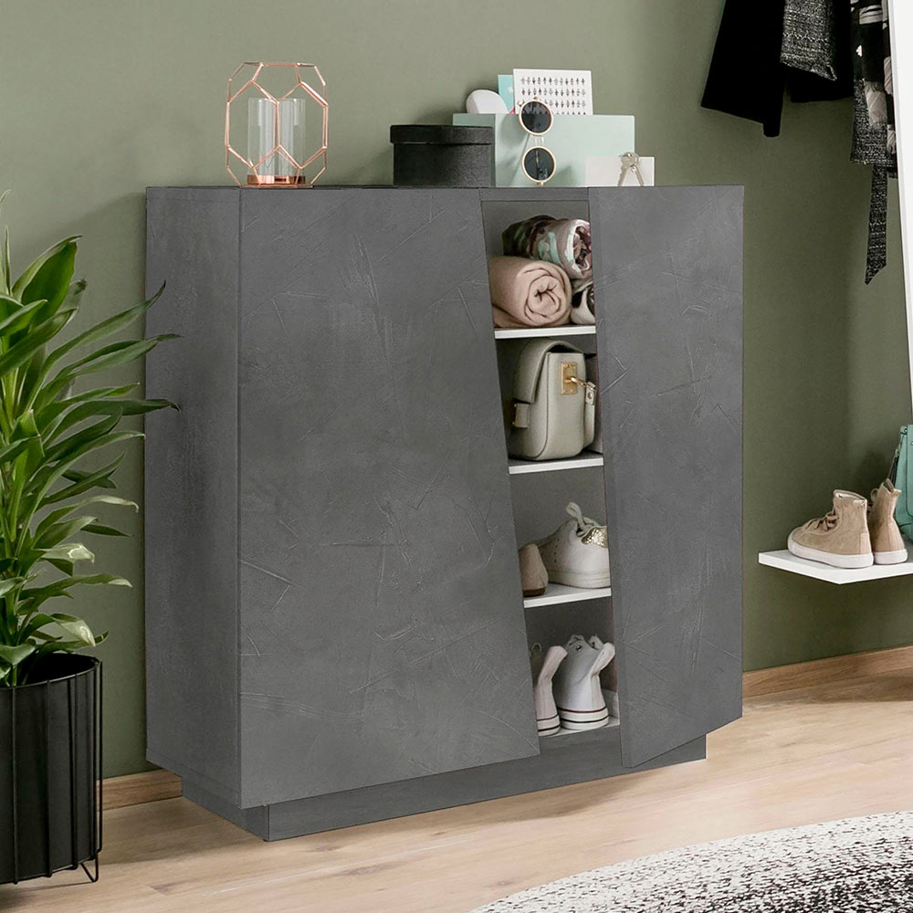 El zapatero se compone de 2 puertas batientes , que cierran 4 compartimentos de almacenamiento , que garantizan un gran espacio de almacenamiento. Está fabricado en melamina y es 100% Made in Italy . Este producto se presta para completar la decoración de cualquier estancia gracias a sus acabados sencillos y elegantes que aportan al ambiente un toque único e inolvidable. El material utilizado garantiza calidad y resistencia incluso en el tiempo.