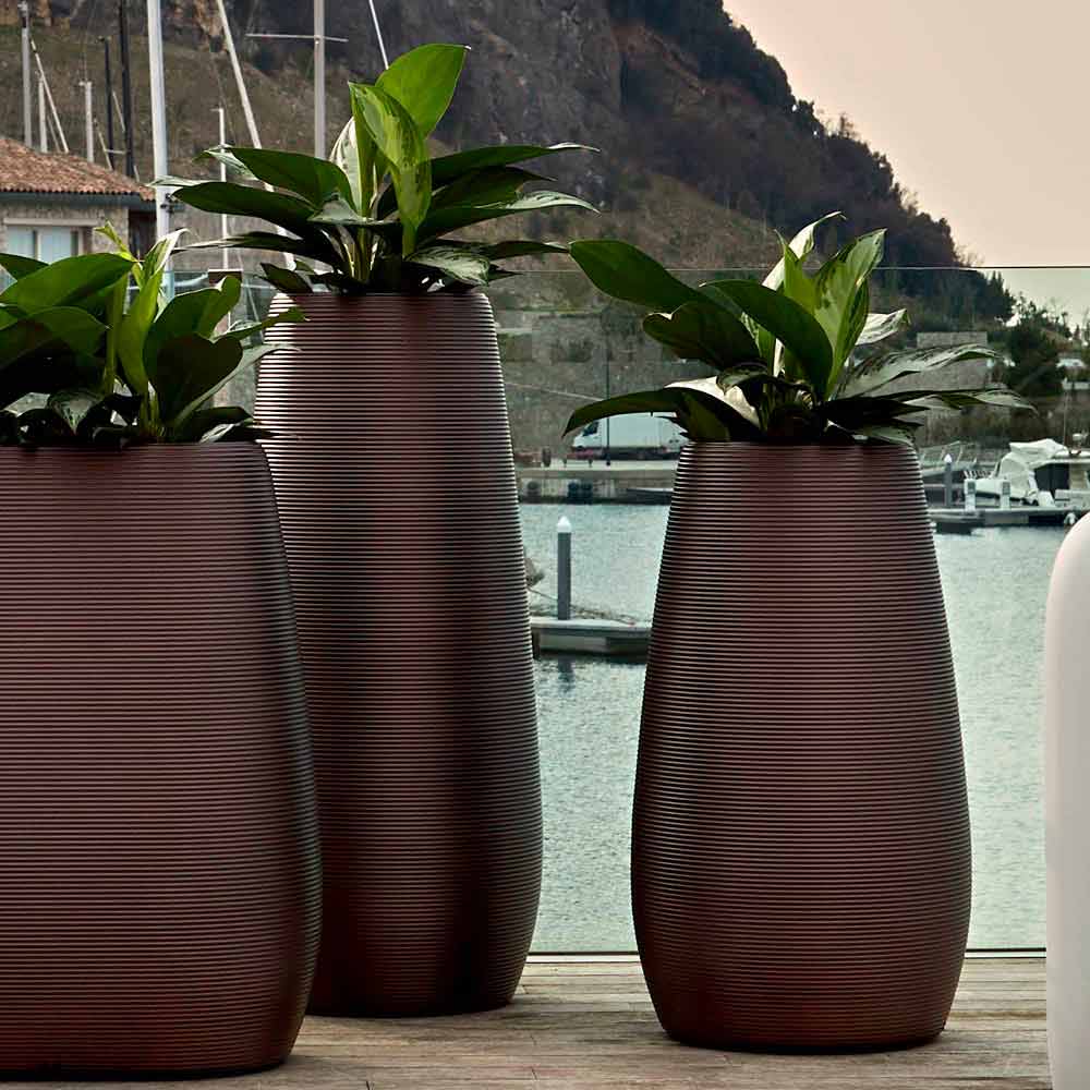 Florero moderno para interior o exterior en plástico perlado oscuro disponible en 3 tamaños, fabricado en Italia, 2 piezas.