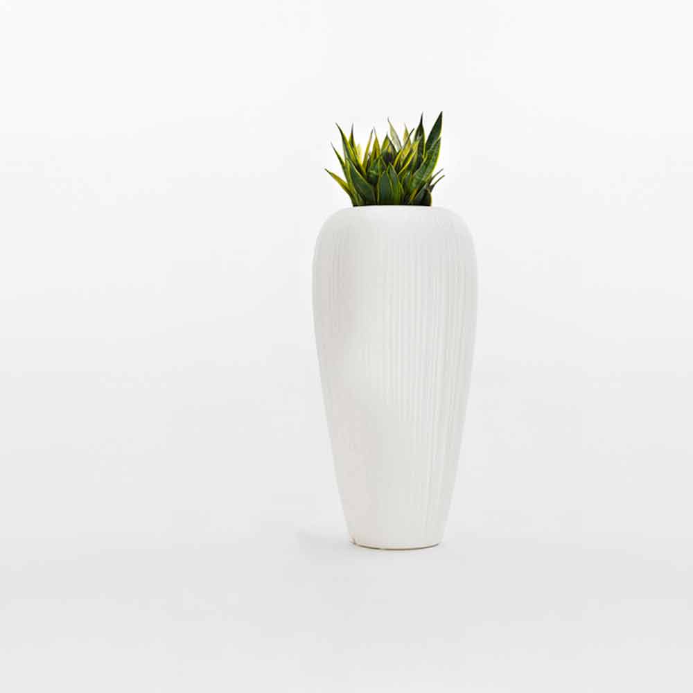 Skin es una familia de jarrones con forma lineal, su encanto se esconde detrás de su textura que desencadena el deseo de tocarlos. El acabado exclusivo está inspirado en la observación de los detalles de los que vive el entorno natural que revela detalles y geometrías aparentemente invisibles pero no insignificantes: todo tiene su propia piel. Skin, es la familia de jarrones que integra la colección Myyour. Se suministra placa de fijación al suelo.