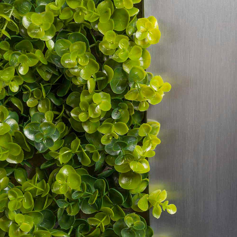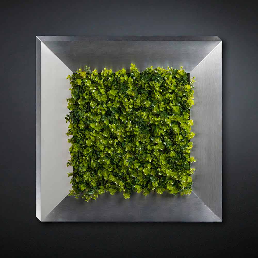 Panel decorativo de pared fabricado en Italia con estructura de metal cromado e inserciones en hojas de eucalipto artificiales . Una idea de mobiliario que surge del insólito encuentro entre las bellezas de la naturaleza y un diseño moderno, enfatizando el encanto de ambos mundos de forma exclusiva. Lo que nace es un complemento decorativo con alma sofisticada que sabe amueblar y llenar cualquier ambiente doméstico o contract de un estilo contemporáneo a través de su extrema versatilidad y refinado minimalismo . Ideal para dar sensación de tridimensionalidad a las paredes de tu hogar, este panel juega un papel fundamental al captar todas las miradas gracias a su alma original y creativa que lleva la mente a un paisaje verde dando paz y tranquilidad .