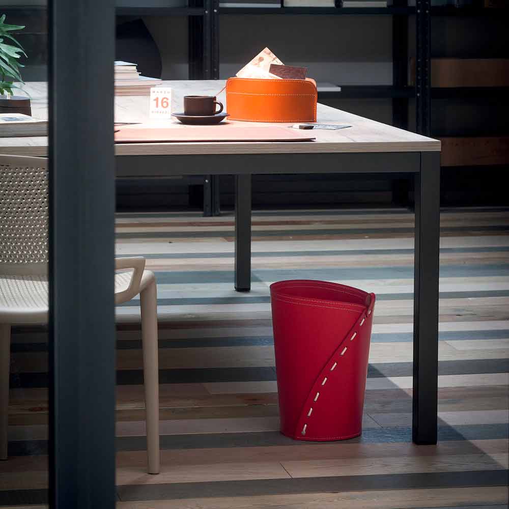 Cesto de papel de diseño 100% hecho en Italia Servus. Servus es un arte de papel hecho en Italia, con un diseño simple y esencial. Puede usarse para completar muebles de oficina con un complemento que no sacrifique la estética por razones prácticas. De hecho, la funcionalidad se combina con un estilo con atención al detalle, capaz de marcar la diferencia. También se puede colocar en entornos privados, como en el dormitorio o en la sala de estar. Servus está hecho a mano con cuero regenerado precioso, tanto por dentro como por fuera. El fondo es de contrachapado, también recubierto de cuero. Hay diferentes colores disponibles para personalizarlos y adaptarlos mejor a sus entornos.