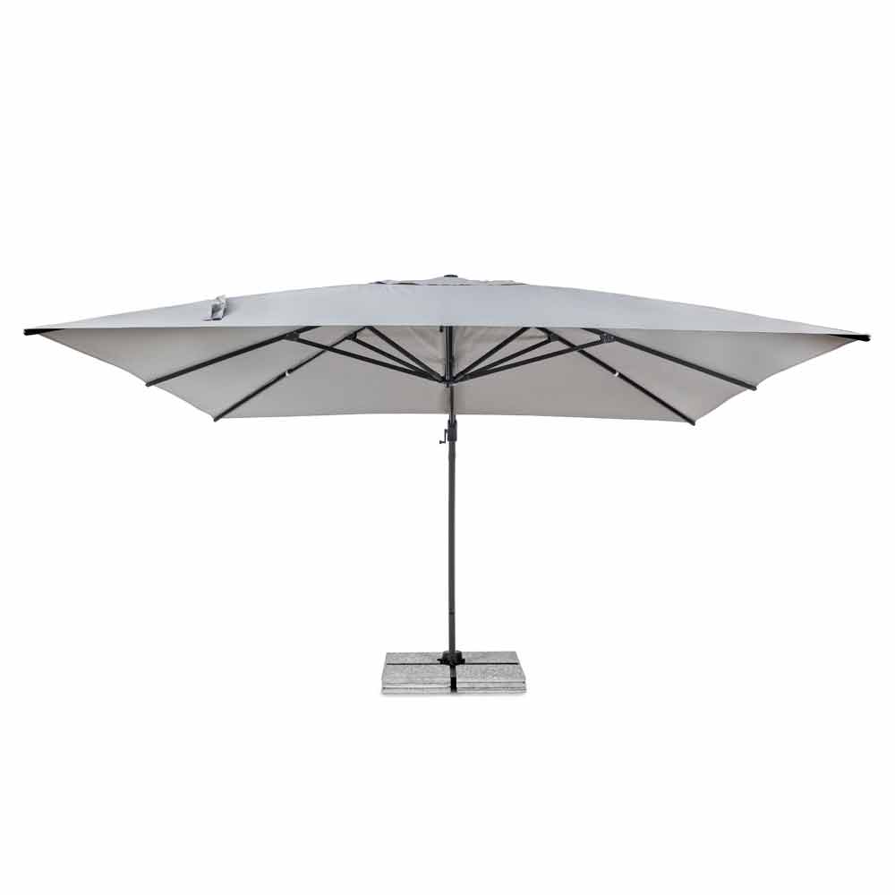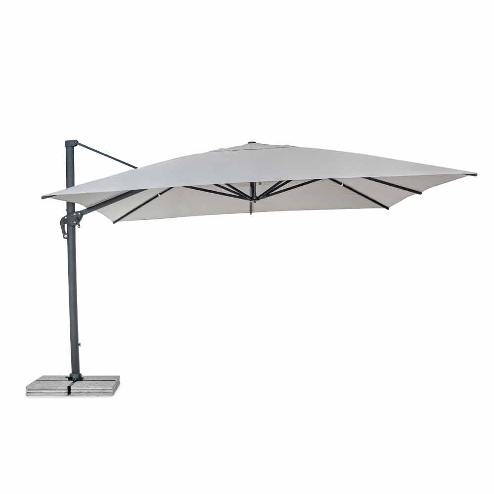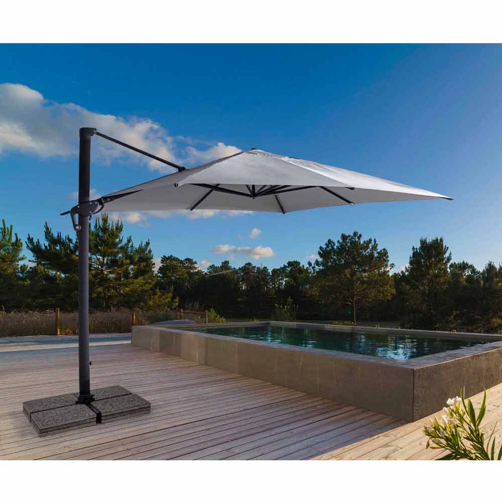 Paraguas exterior 4x4 en poliéster gris y aluminio antracita.