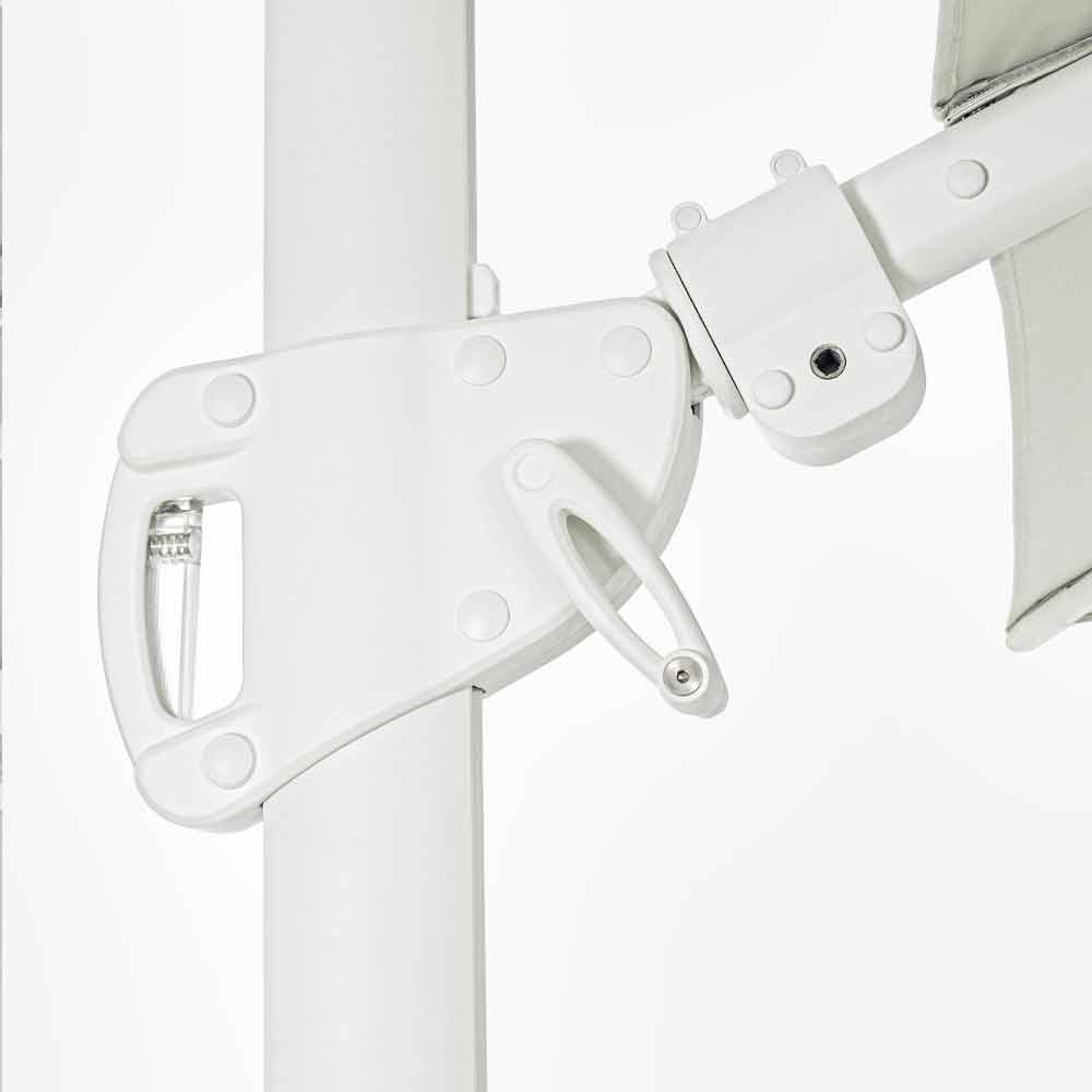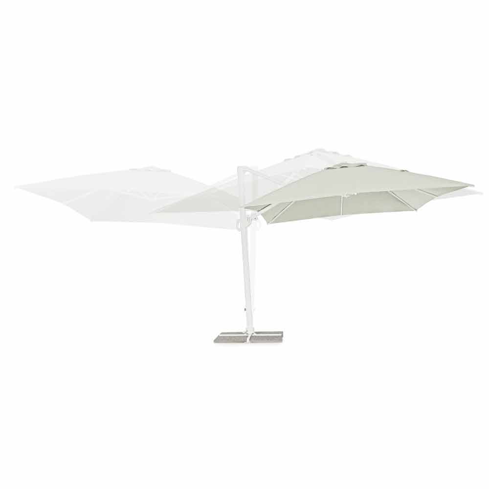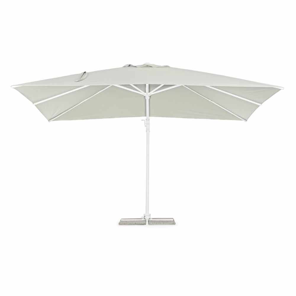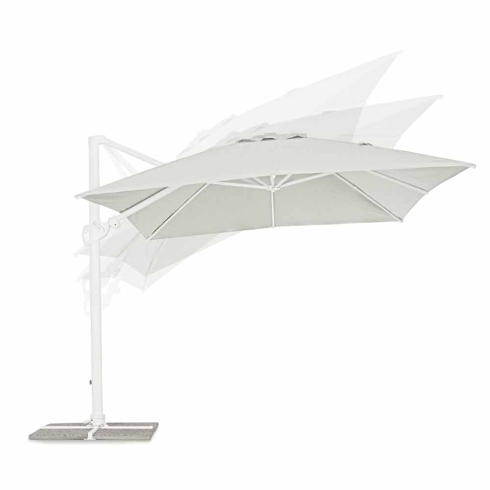 Estructura de aluminio pintado en polvo (poliéster). Mástil de 90x60mm, 8 varillas de 25x17mm, tejido poliéster natural 250gr / m2 con revestimiento de pa (poliamida), base en cruz de acero, mástil giratorio 360 ° con pedal. Inclinación vertical con asa de 5 posiciones, equipada con un sistema de inclinación de paraguas de derecha a izquierda. Incluye funda de paraguas. Azulejos no incluidos .